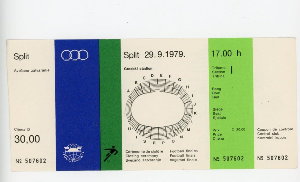 Ulaznica za svečano zatvaranje Mediteranskih igara 1979., izrada: Boris Ljubičić, HŠPOM-10740
