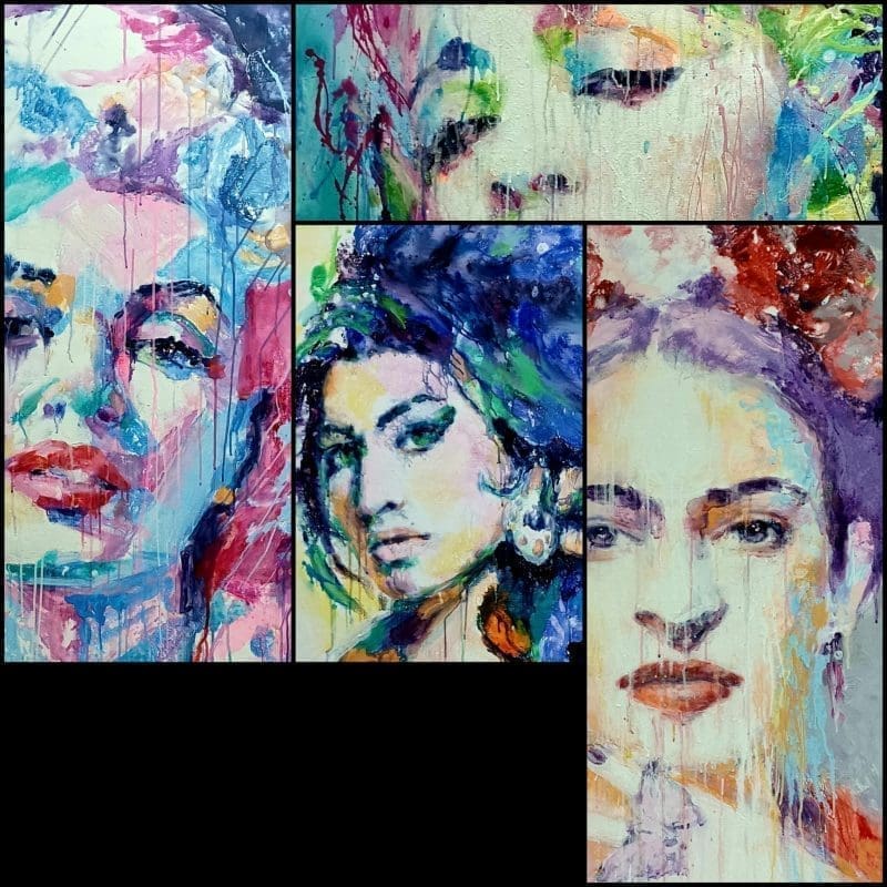 Marilyn Monroe, Tamara de Lempicka, Amy Winehouse, Lady Gaga, Madonna, Tina Turner i Frida Kahlo – portreti žena koje su svojim životom, svojim kreacijama i sudbinama zadivile svijet. I tragičnim sudbinama, poput mnogih žena. Individualizirani prikazi portretiraju različite aure, od senzualnosti, ranjivosti pa sve do neobuzdanosti i hrabrosti.