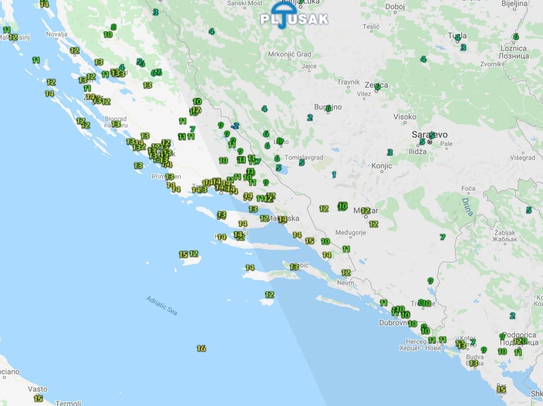 Protekle noći preko našeg područja se premještala fronta koja je donijela nešto kiše. Bez obzira na to što su jugo i lebić zamijenili bura i tramontana, temperature zraka bile su još više nego prethodnih dana.