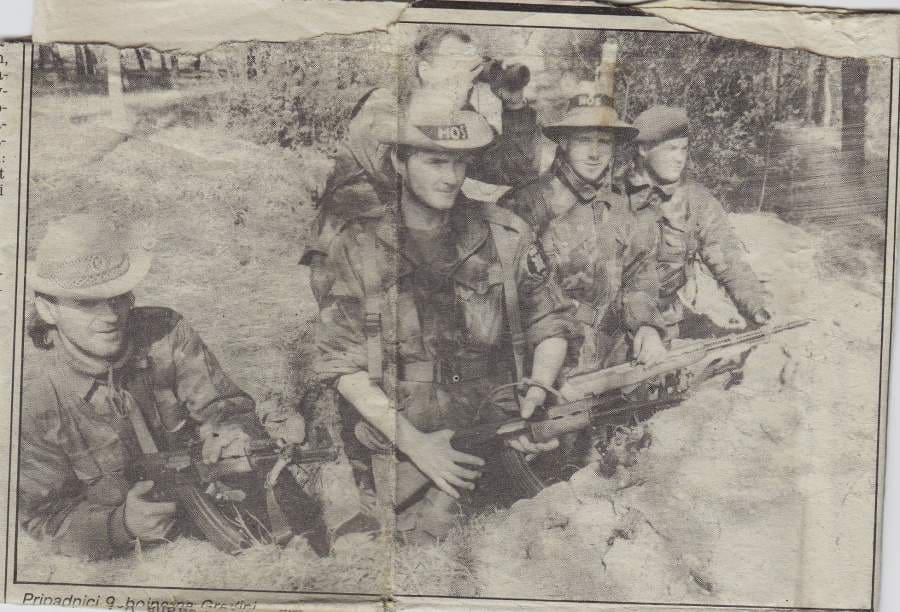 Kažimo i da je u sastavu 9. bojne HOS-a bilo oko 60 stranaca, ponajviše Engleza i Francuza, te Iraca, Nijemaca, Španjolaca, Ukrajinaca, Nizozemaca, Francuza, Poljaka, Finaca, Šveđana, i Litavaca. Mnogi od njih su prethodno bili pripadnici profesionalnih vojnih postrojbi, francuske i španjolske Legije stranaca, rodezijskog i britanskog SAS-a, te francuskih padobranskih postrojbi.