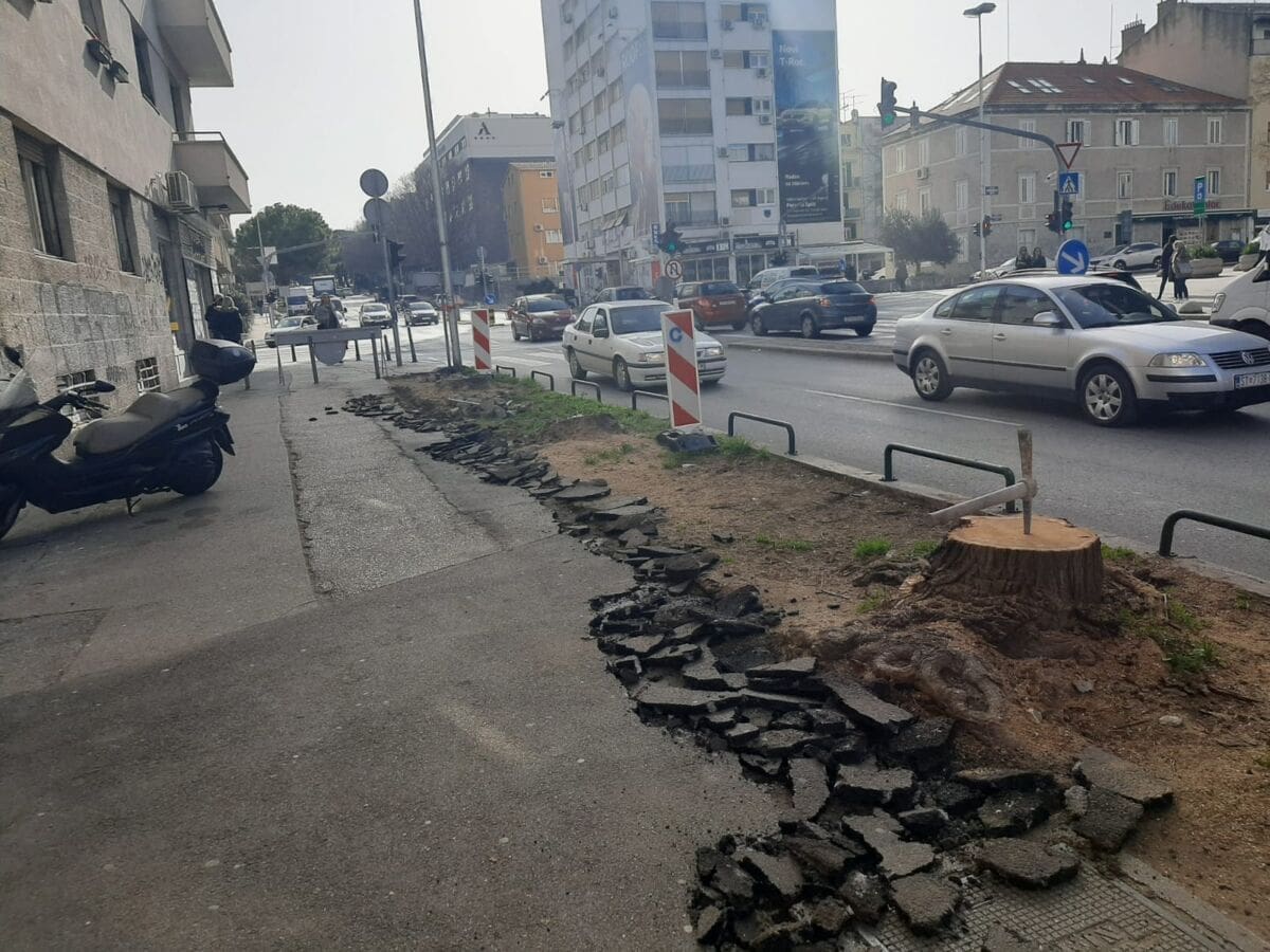 Nakon što se sikine cijeli trotoar, bit će postavljen novi, čime je nastavljeno uređivanje Ulice Hrvatske mornice, koja preko Parka mladeži vodi do Poljudskog stadiona.