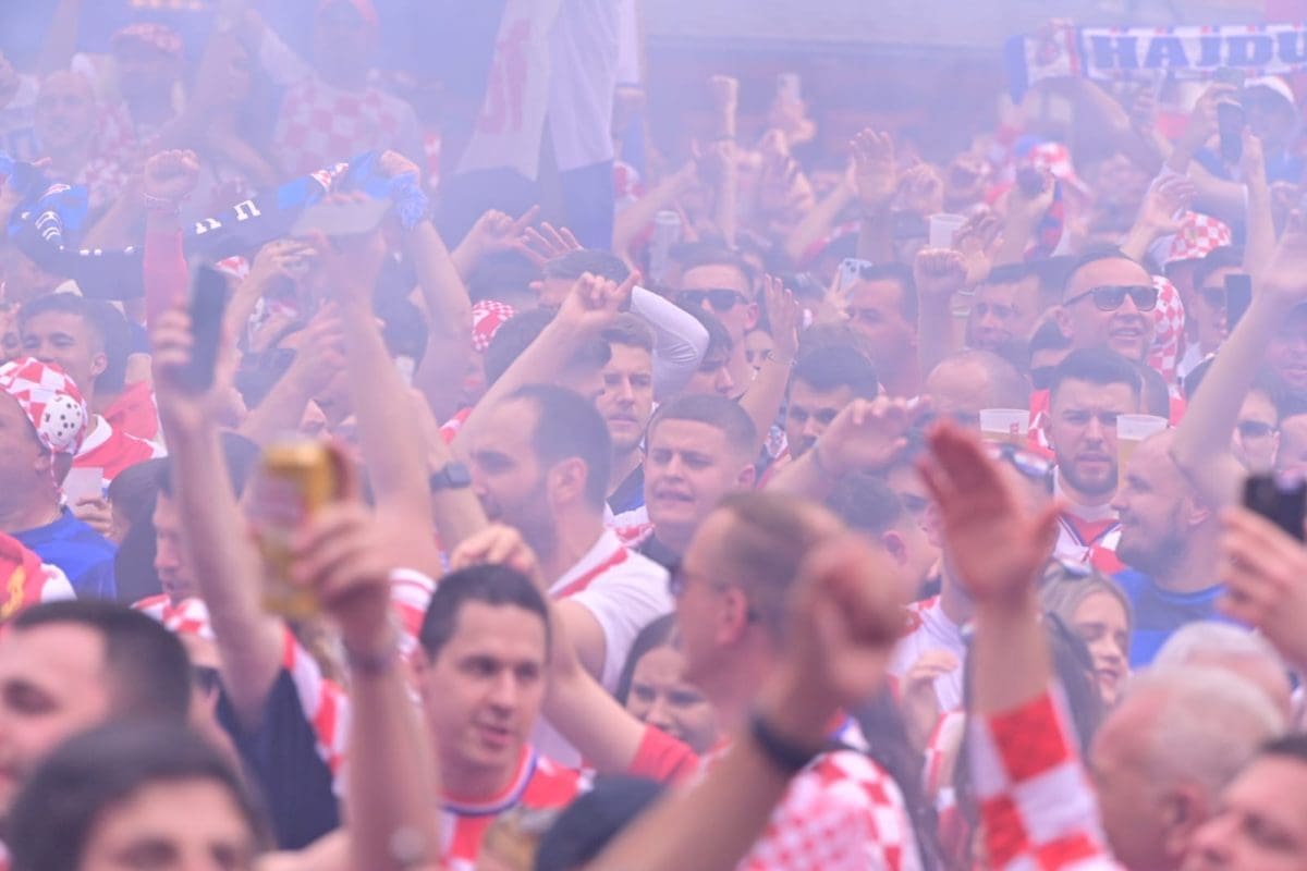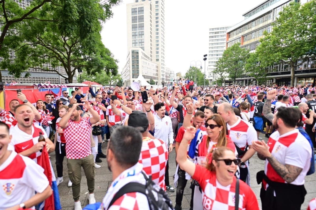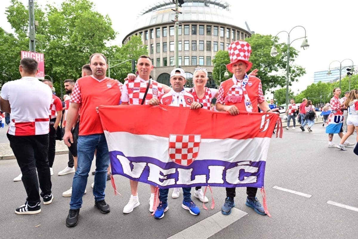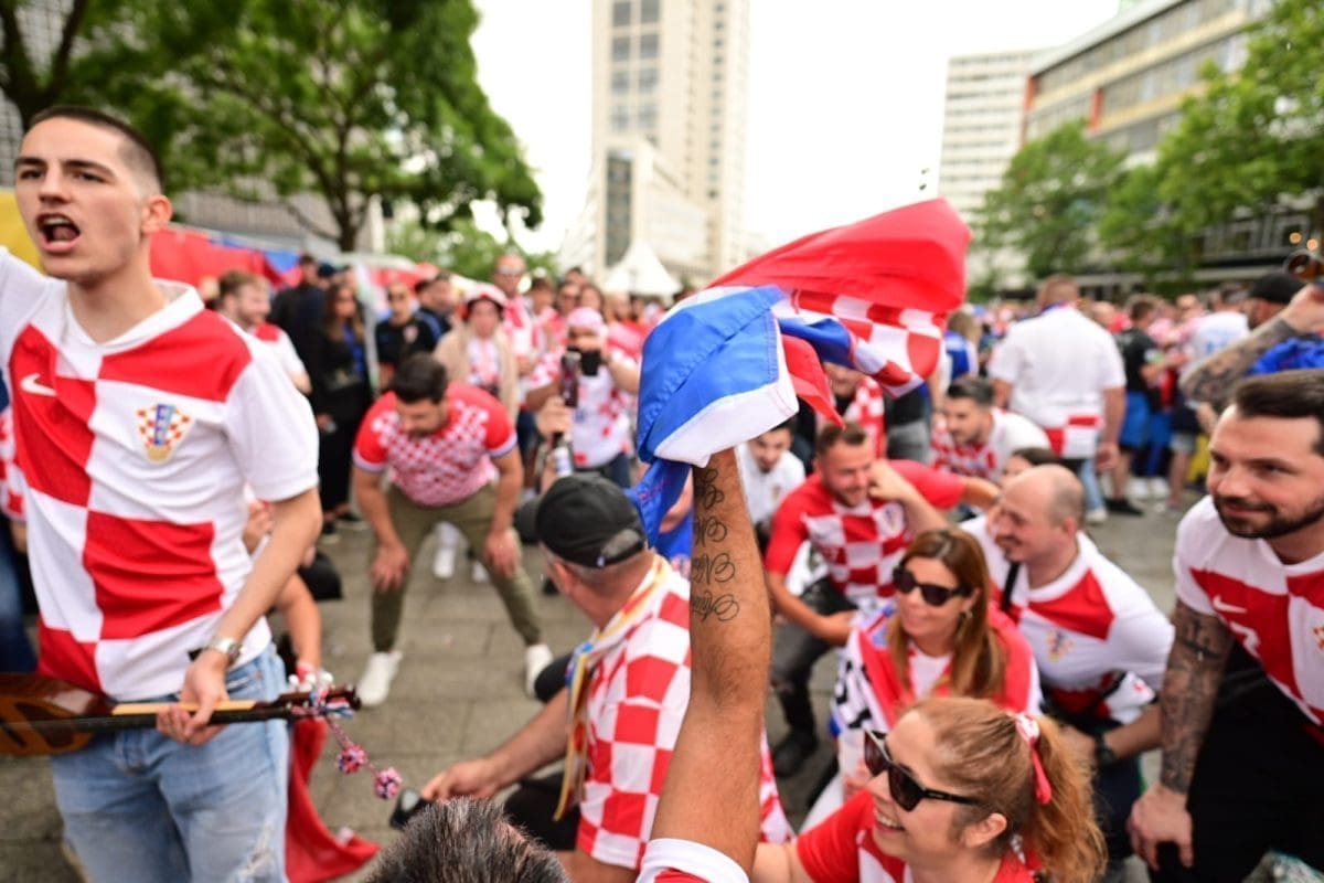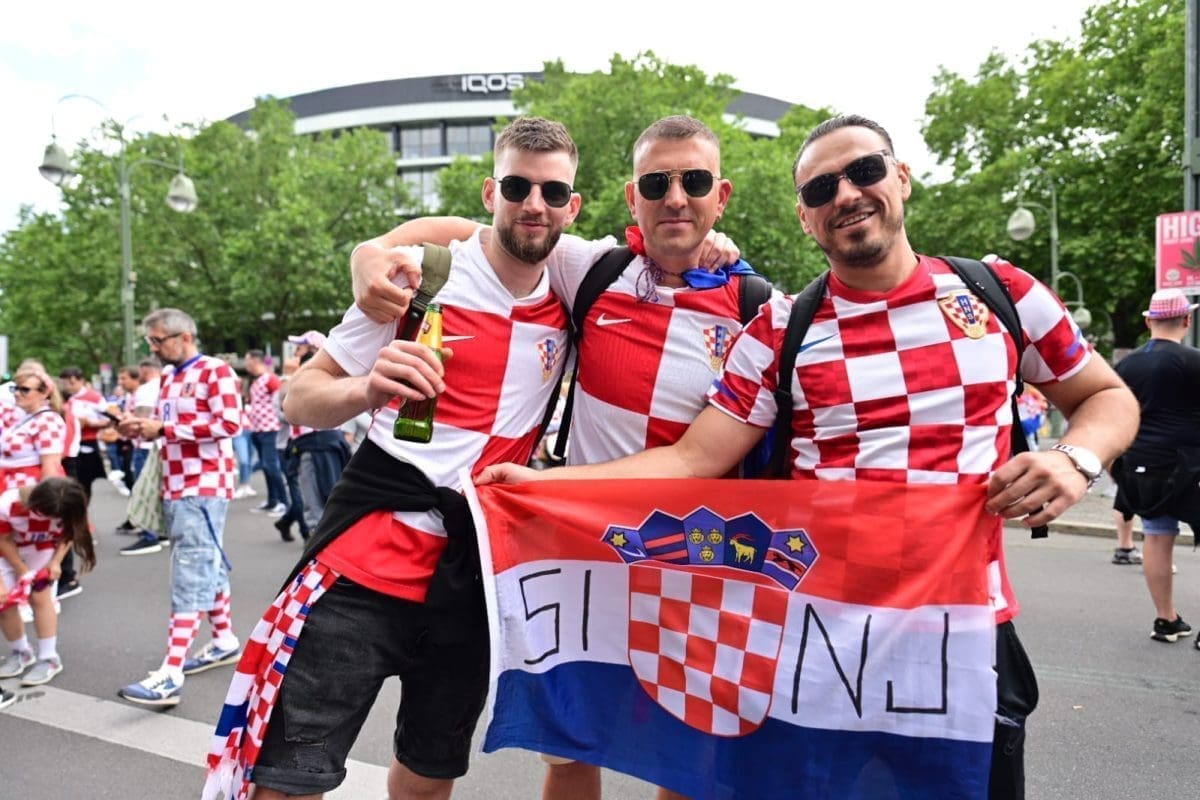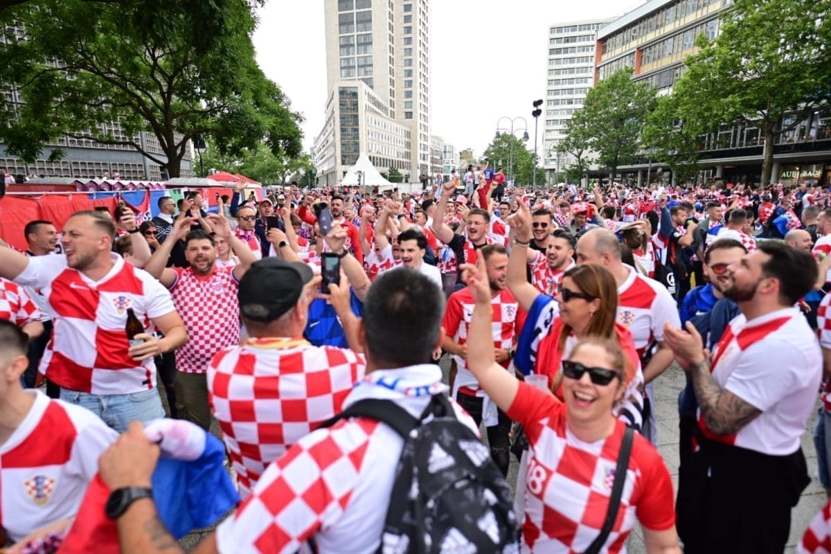 U Berlinu se nalazi više desetaka tisuća Hrvata. Hrvatski navijači razvili su veliku zastavu, a kockice su doslovno okupirale Berlin. Atmosfera je nekoliko sati prije početka utakmice doslovno užarena, a vatreno ludilo ni sekunde se ne smiruje. Sve je zabilježio naš Roko Pavlinušić.