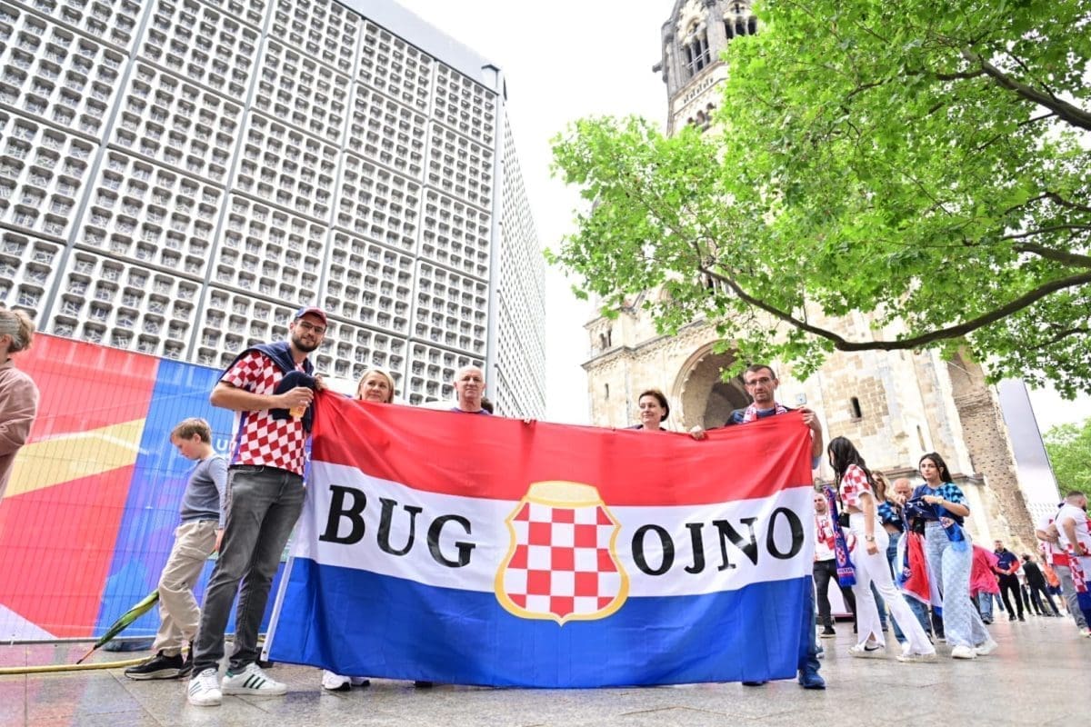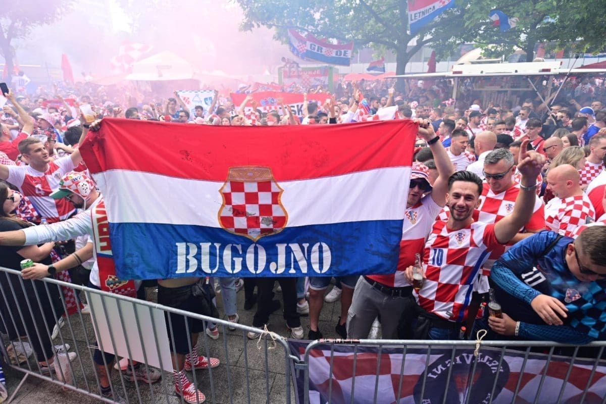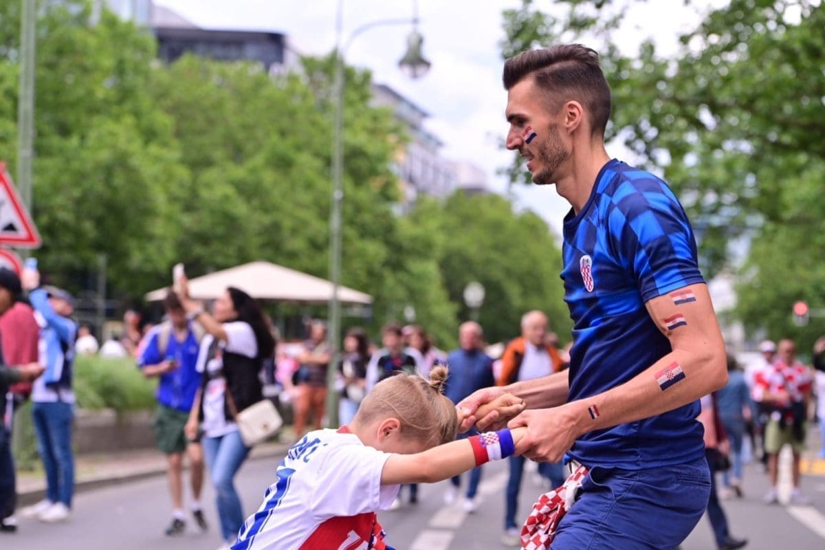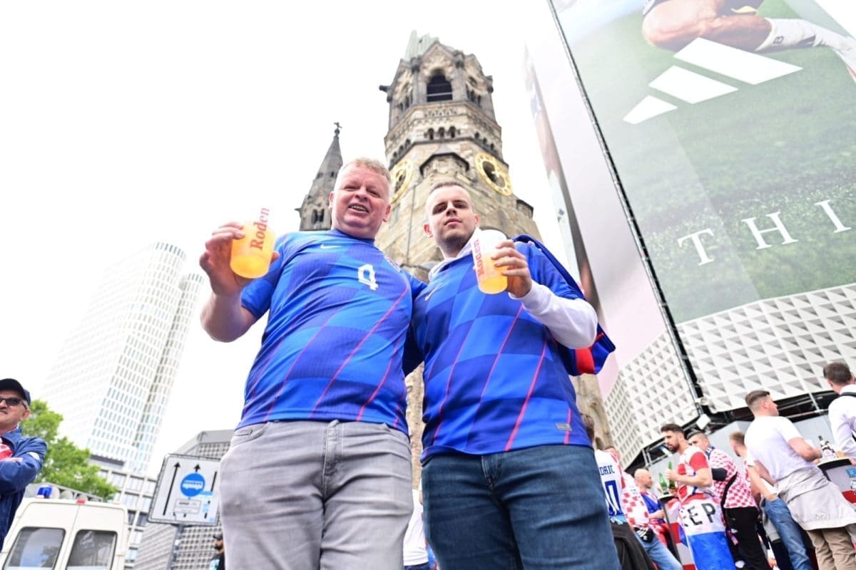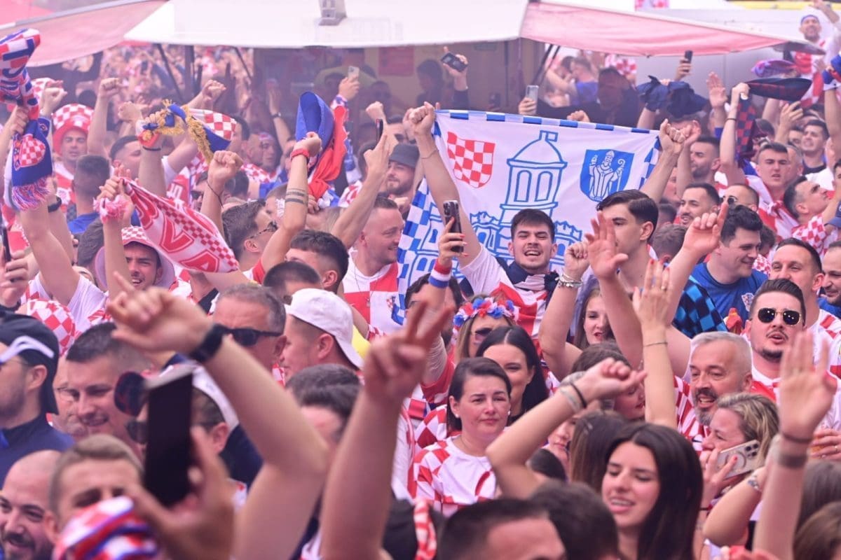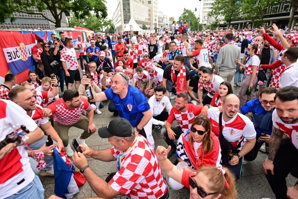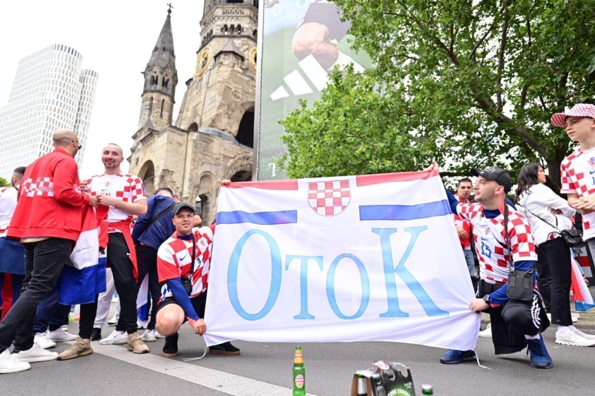 U Berlinu se nalazi više desetaka tisuća Hrvata. Hrvatski navijači razvili su veliku zastavu, a kockice su doslovno okupirale Berlin. Atmosfera je nekoliko sati prije početka utakmice doslovno užarena, a vatreno ludilo ni sekunde se ne smiruje. Sve je zabilježio naš Roko Pavlinušić.