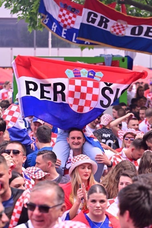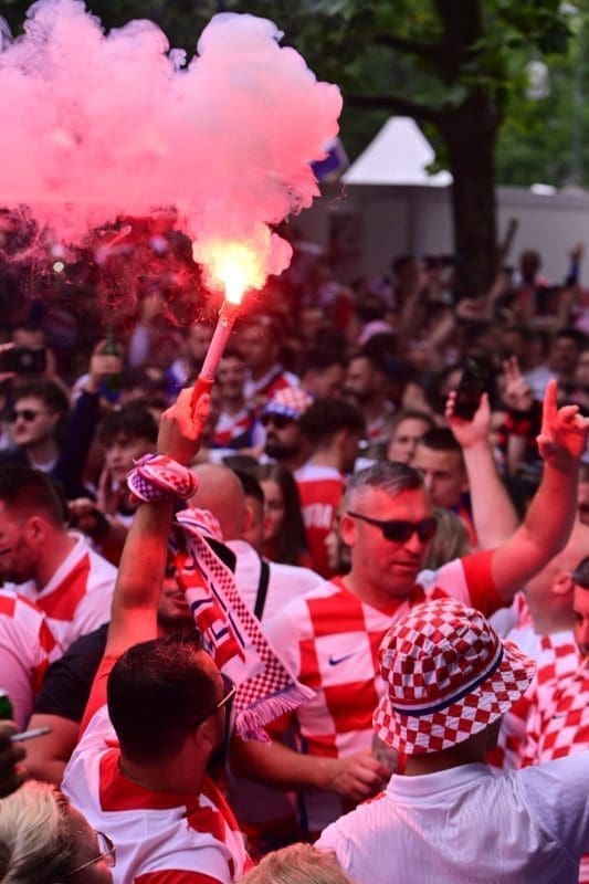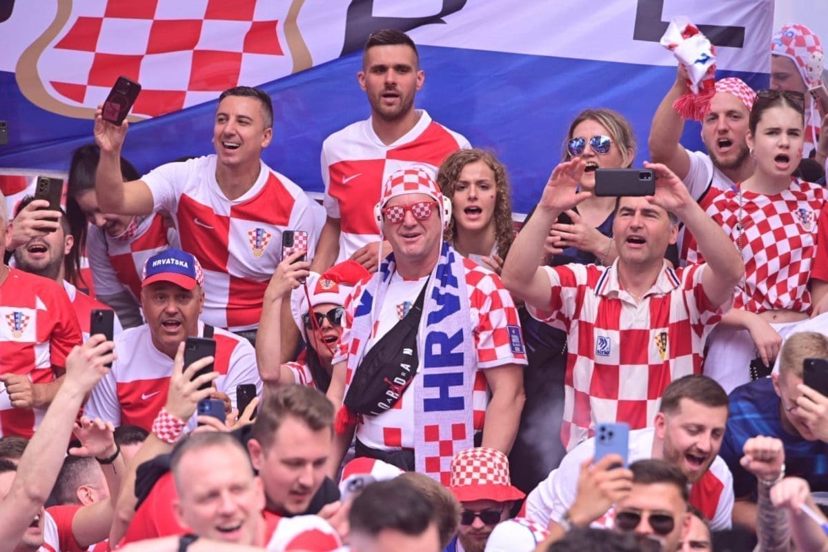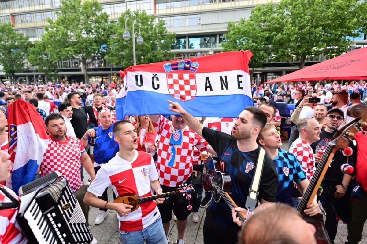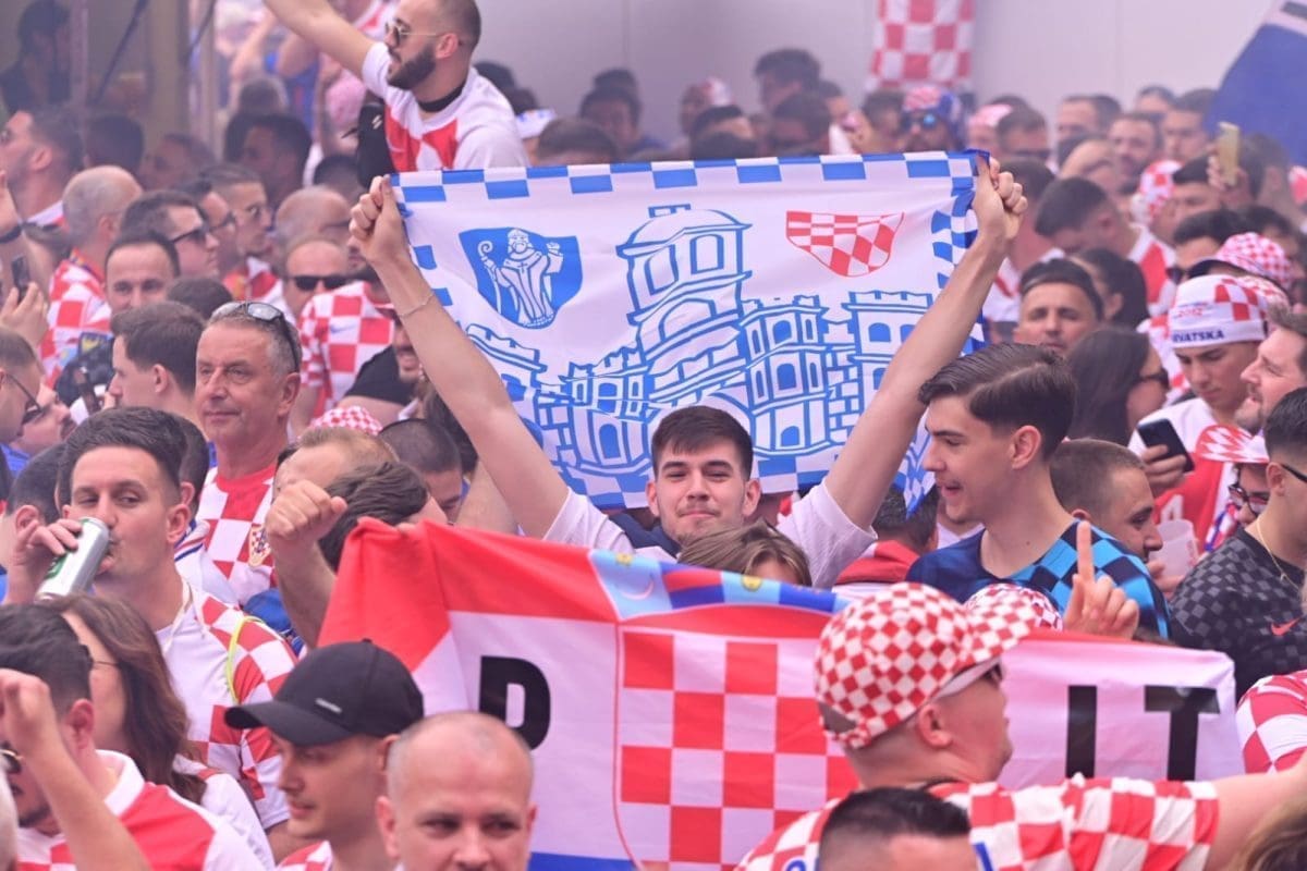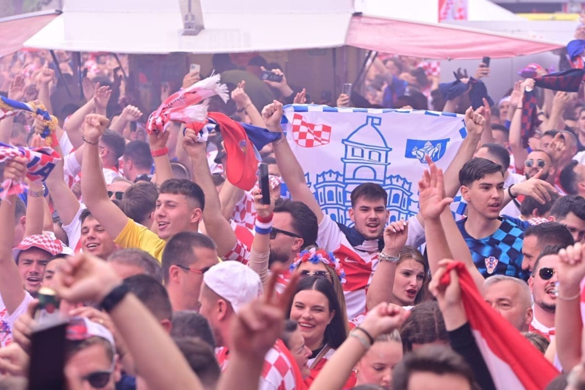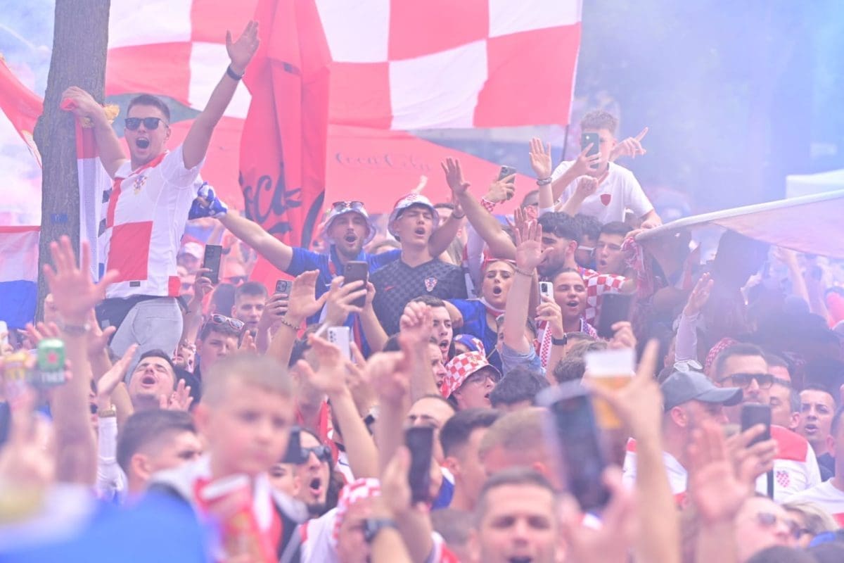 U Berlinu se nalazi više desetaka tisuća Hrvata. Hrvatski navijači razvili su veliku zastavu, a kockice su doslovno okupirale Berlin. Atmosfera je nekoliko sati prije početka utakmice doslovno užarena, a vatreno ludilo ni sekunde se ne smiruje. Sve je zabilježio naš Roko Pavlinušić.