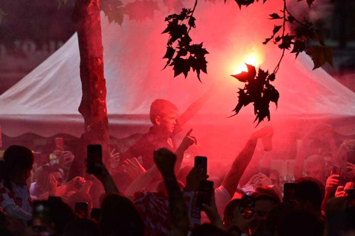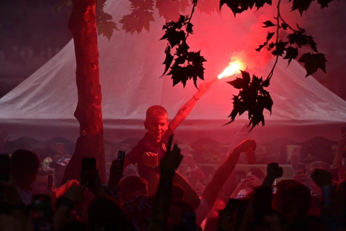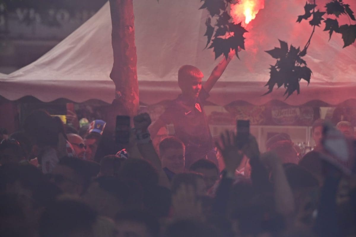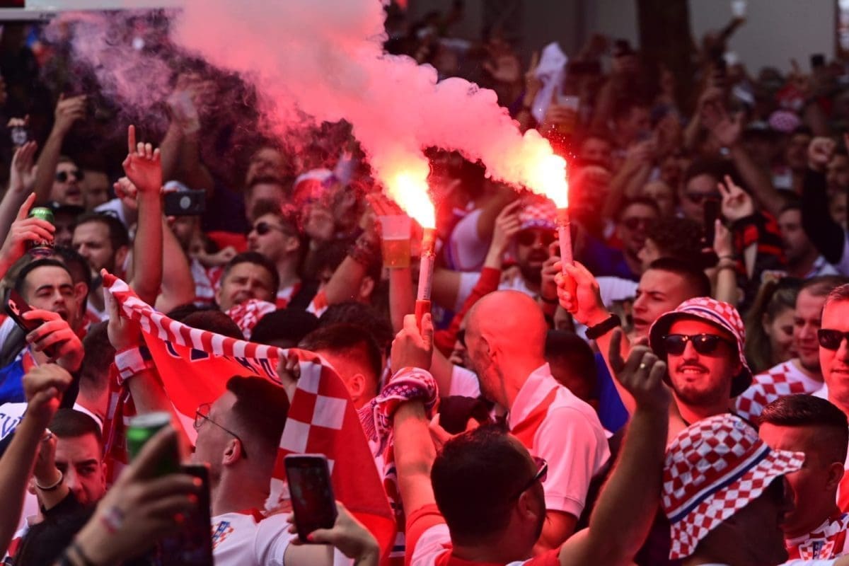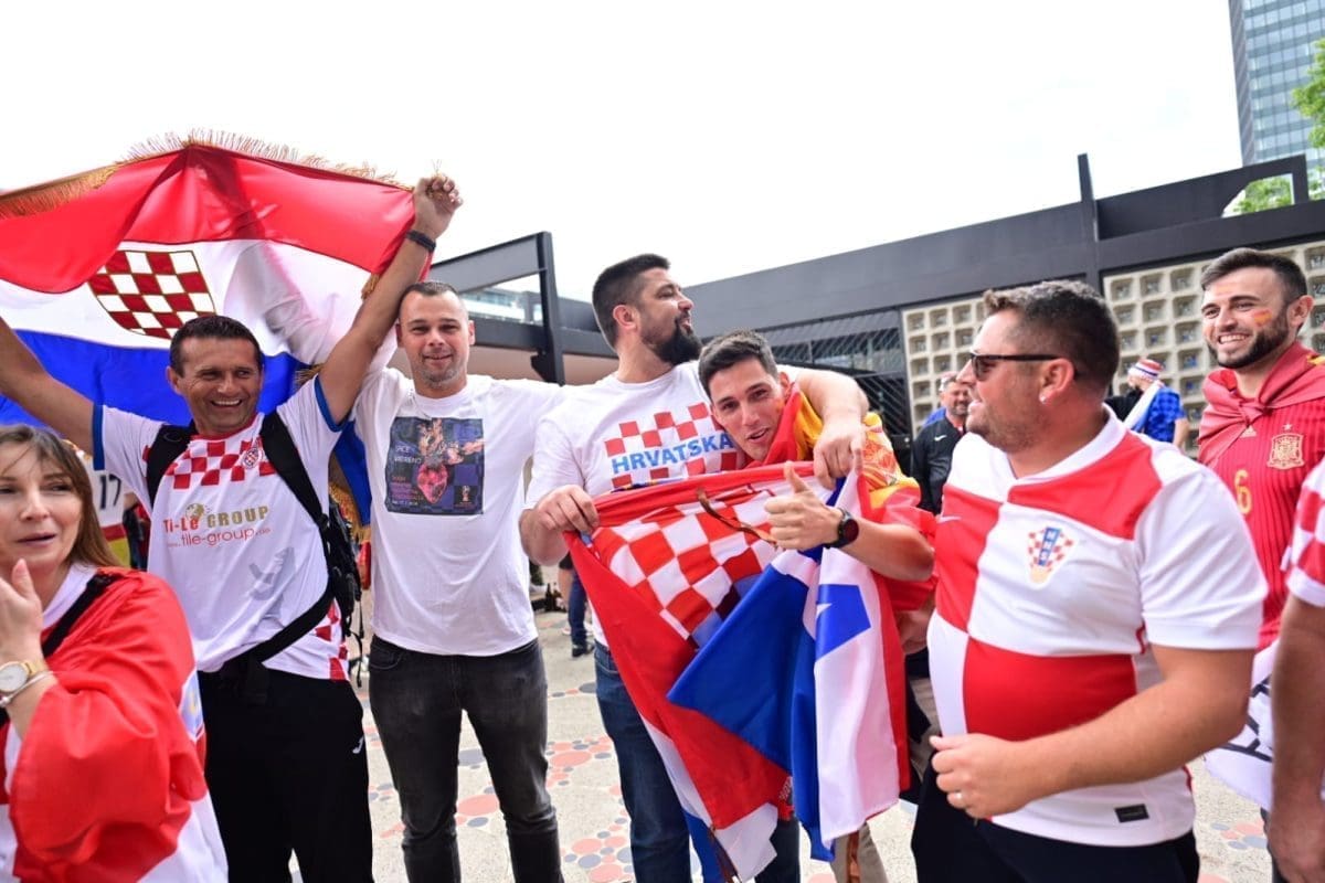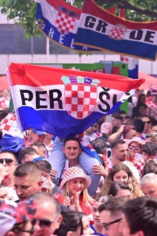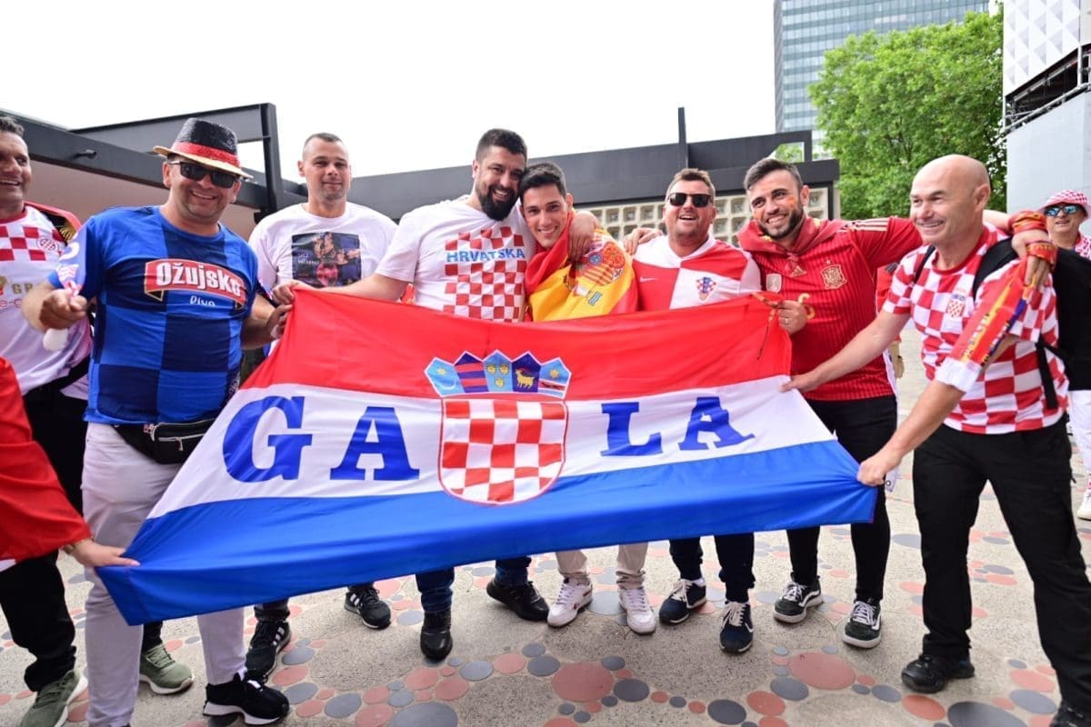 U Berlinu se nalazi više desetaka tisuća Hrvata. Hrvatski navijači razvili su veliku zastavu, a kockice su doslovno okupirale Berlin. Atmosfera je nekoliko sati prije početka utakmice doslovno užarena, a vatreno ludilo ni sekunde se ne smiruje. Sve je zabilježio naš Roko Pavlinušić.