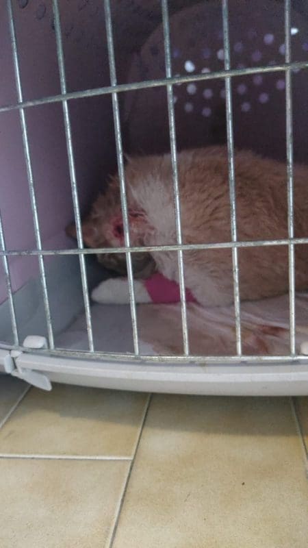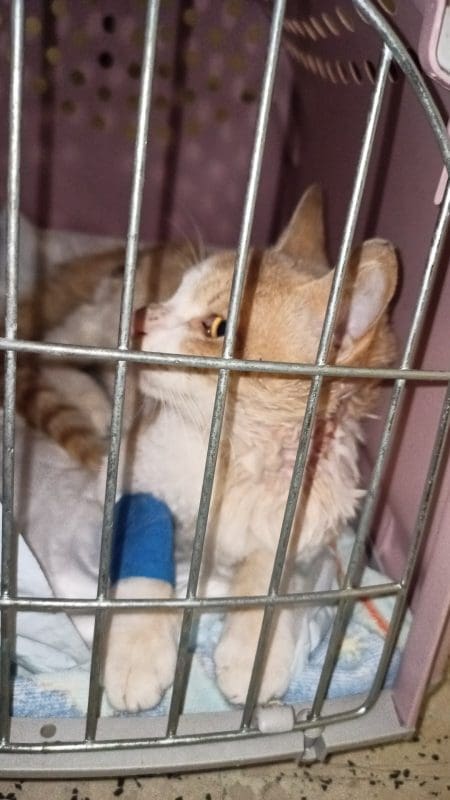 Nesretnoj životinji su pomogli volonteri okupljeni oko grupe Napuštene šapice – Solin omogućivši veterinarsku skrb koja je mačku spasila život. Osim rane na vratu, mačak je propucan u području kuka tako da mu je morala biti amputirana noga.