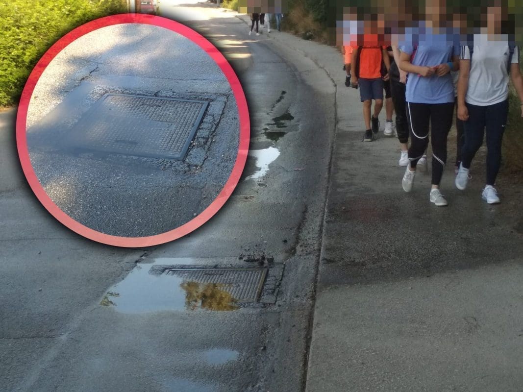 Uredite se za školu, a onda vas zaliju s fekalijama. To se događa djeci u Žrnovnici, na trotoaru, dvadesetak metara od pješačkog prelaza prema Korešnici. Ne, nije to voda nego nečiji ispust iz septičke jame koji je dopilotao telekomunikacijskim kanalom i doslovno izvire iz šahte.