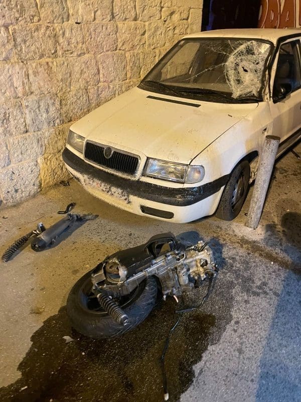 Čitatelj nam je poslao fotografije prometne nesreće. Motocikl se doslovno prepolovio, a nastradalo je i parkirano auto u blizini.