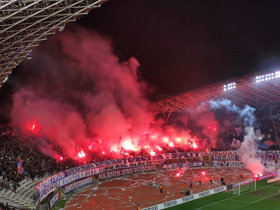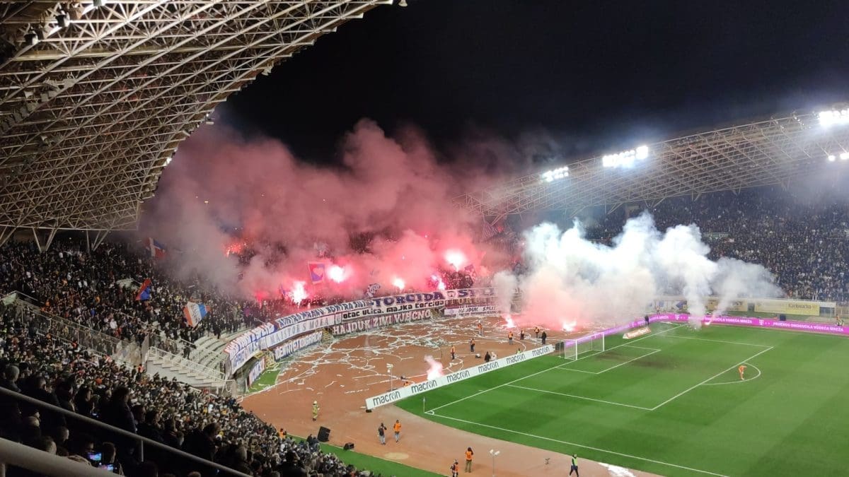 Utakmicu i derbi kola 1. HNL igraju Hajduk i Osijek, a najveće navijanje, očekivano odjekuje sa poljudskog sjevera gdje je Torcida u jednom trenutku zapalila baklje.