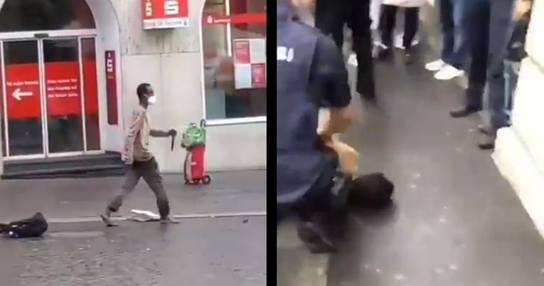 Napadač je upucan u nogu. Na društvenim mrežama se pojavilo više snimki na kojima se vidi kako ljudi pokušavaju savladati napadača. U tim su pokušajima koristili stolce iz kafića i svojevrsni štap. Napadač je naposljetku počeo bježati pred dvadesetak ljudi, a u tom se trenutku pojavljuje i policijsko vozilo.