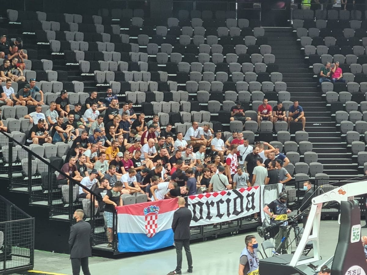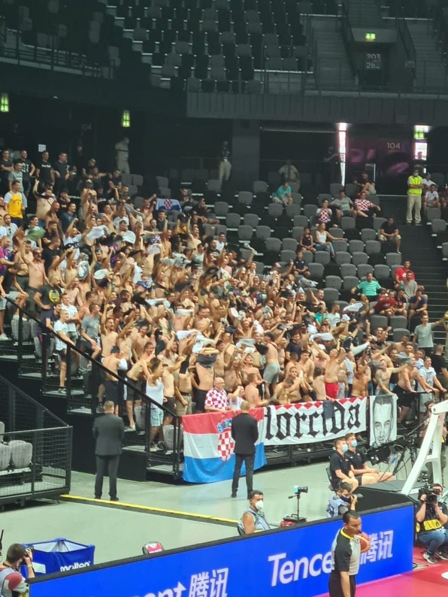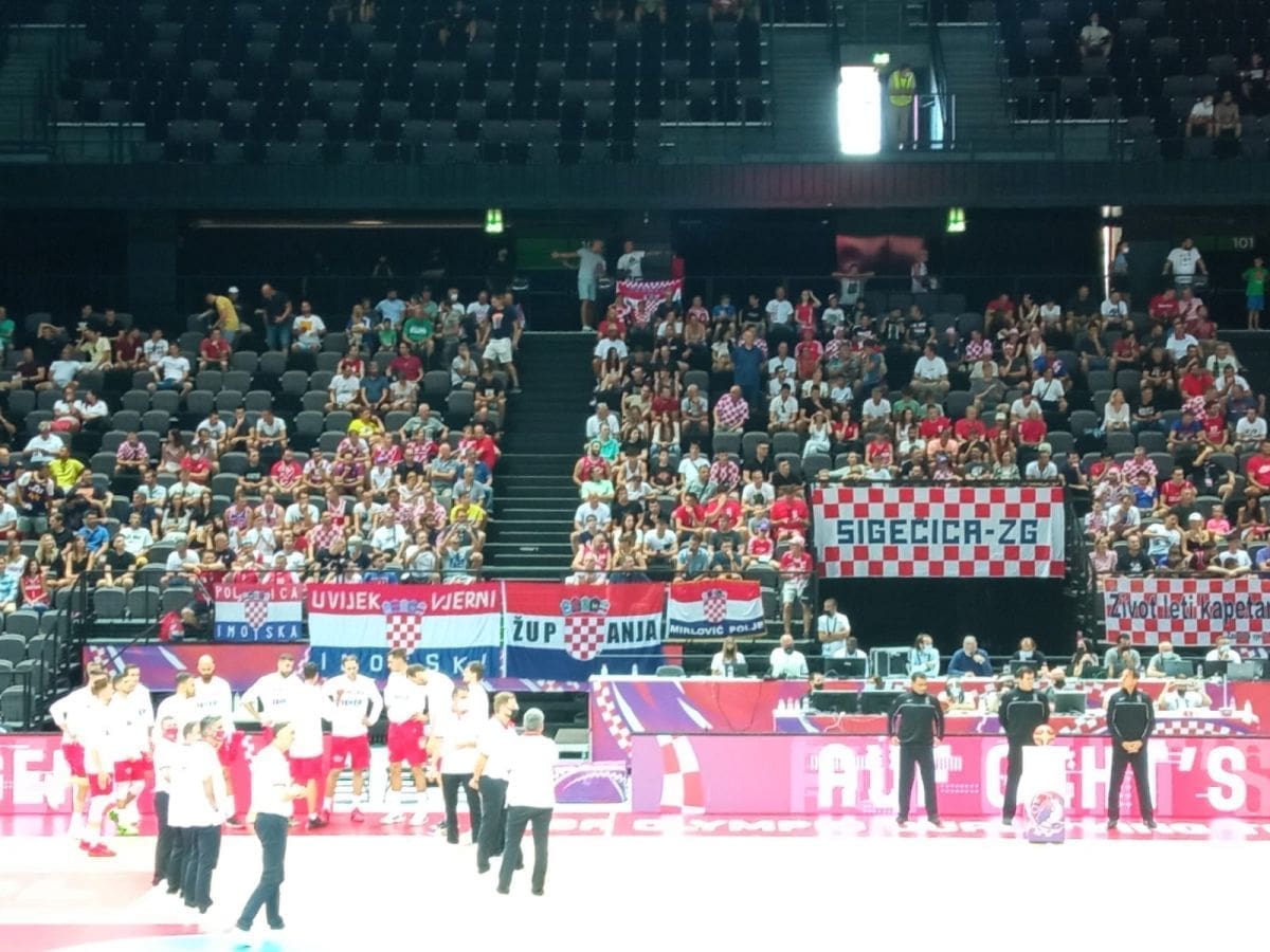 16.40 - Kako je i najavljeno u dvoranu je stigla i Torcida, bodre naše košarkaše a među viđenijim navijačima na ogradi je i Bernard Perić poznatiji kao Dena izbornik!