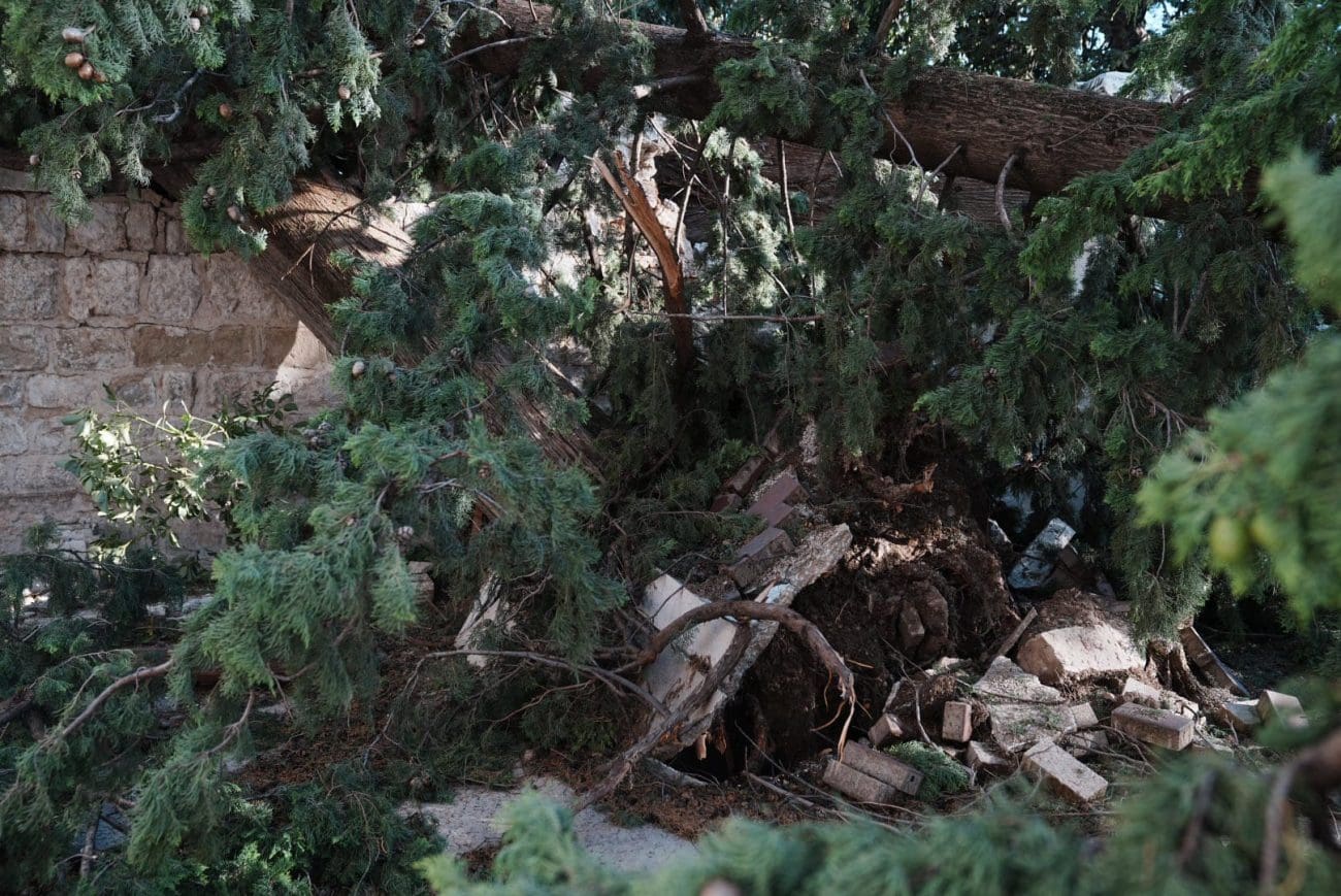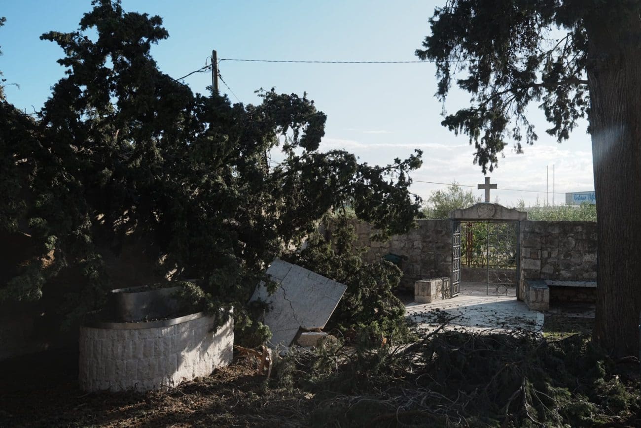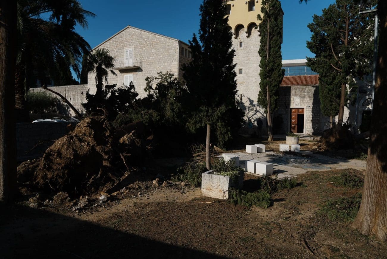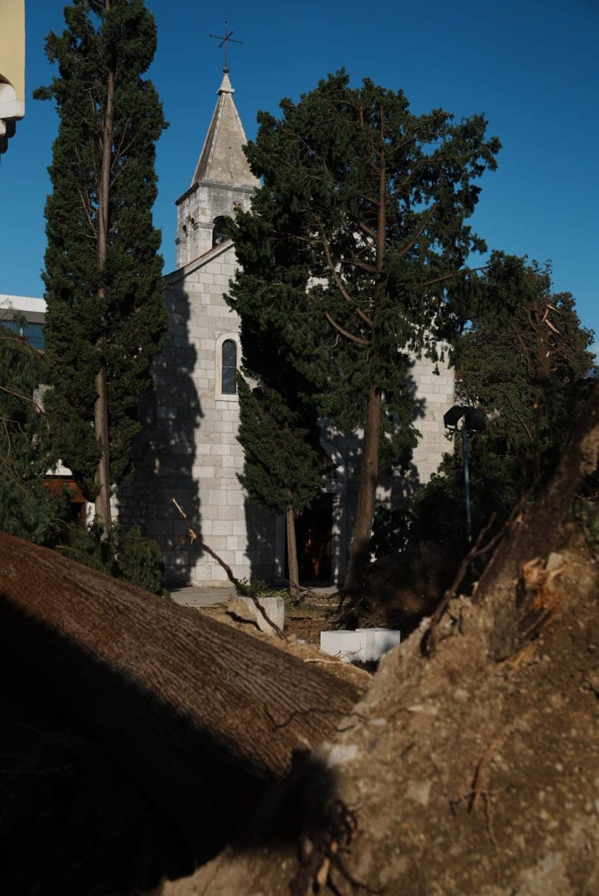 Naš fotoreporter Igor Jakšić posjetio je samostan Svetog Ante na Poljudu, gdje je zabilježena značajna šteta – srušeno drveće, oštećenje u klaustru te nered u dvorišnom prostoru svjedoče o silini udara koji nije zaobišao ni sakralne objekte.