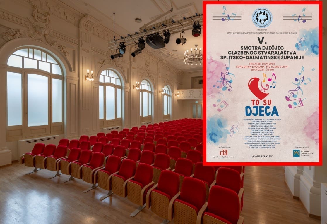 Savez kulturno umjetničkih društava Splitsko-dalmatinske županije organizira V. smotru dječjeg glazbenog stvaralaštva Splitsko-dalmatinske županije. Održat će se 25. travnja u 11 sati u Koncertnoj dvorani Ive Tijardovića u Hrvatskom domu Split.