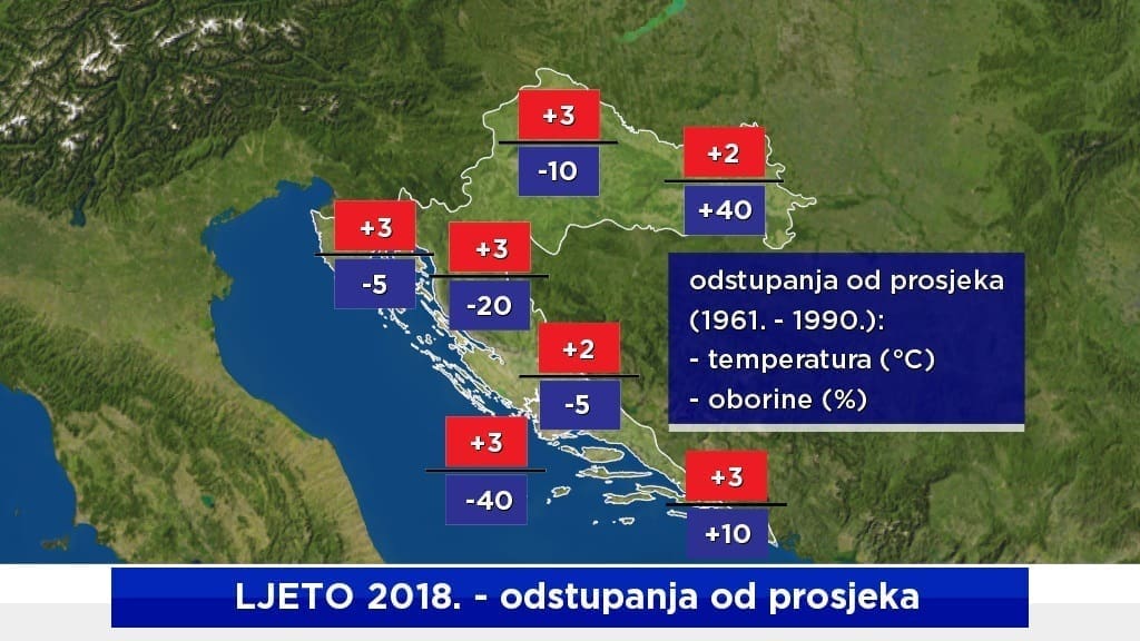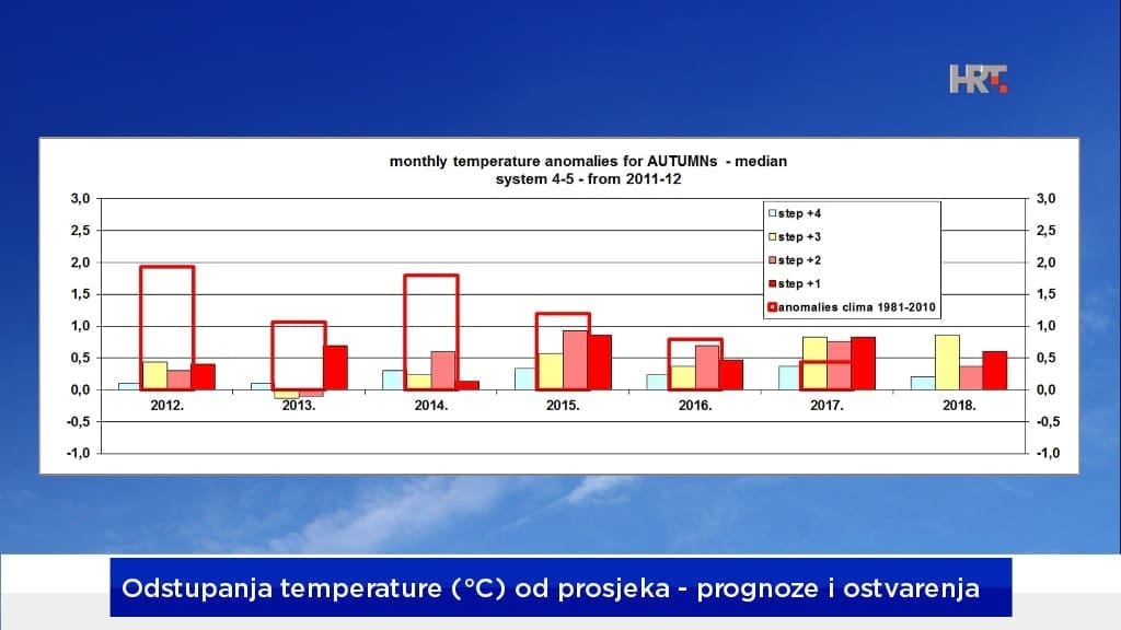Povećana je vjerojatnost da će i srednja sezonska temperatura, a i svakog od sljedeća tri mjeseca u većini Hrvatske biti barem malo viša od prosjeka, a podjednaka je prognoza i ukupne sezonske količine oborine za Jadran i područja uz njega, dok je u sjevernijim krajevima vjerojatnost odstupanja od prosjeka znatno manja.