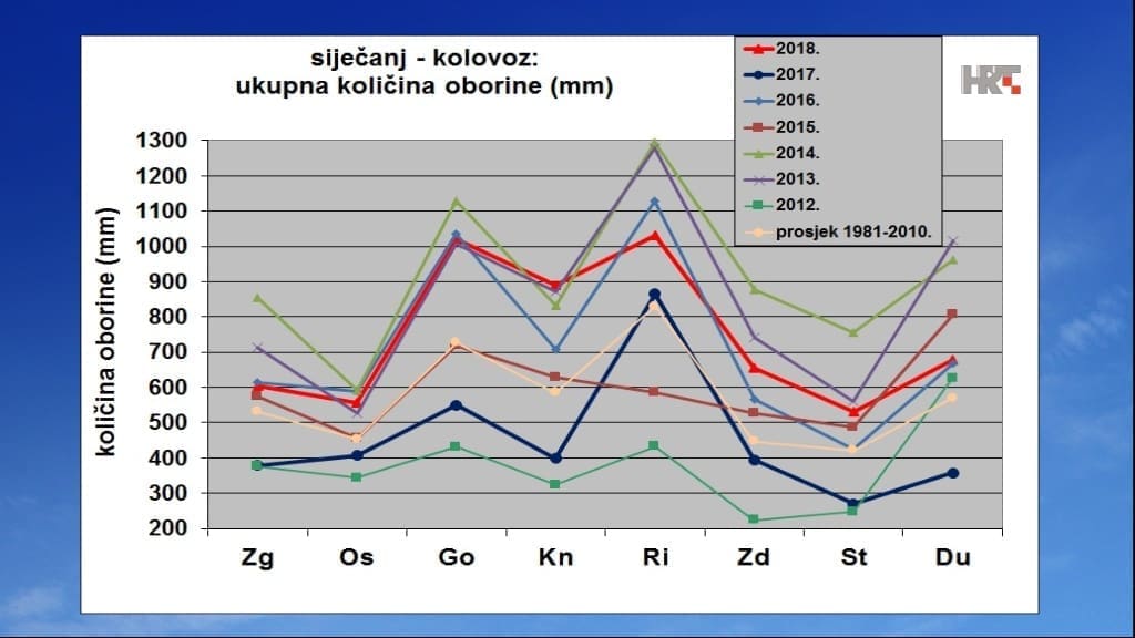 Zahvaljujući kolovozu, ali i većini ostalih mjeseci, posebice siječnju, travnju i svibnju, koji su bili među najtoplijima u povijesti mjerenja, gdjekoji i rekordni, i prve dvije trećine godine bile su kao rijetko kada. Viša srednja temperatura zraka bila je samo 2007. godine, a u Dubrovniku - čak ni tada.
