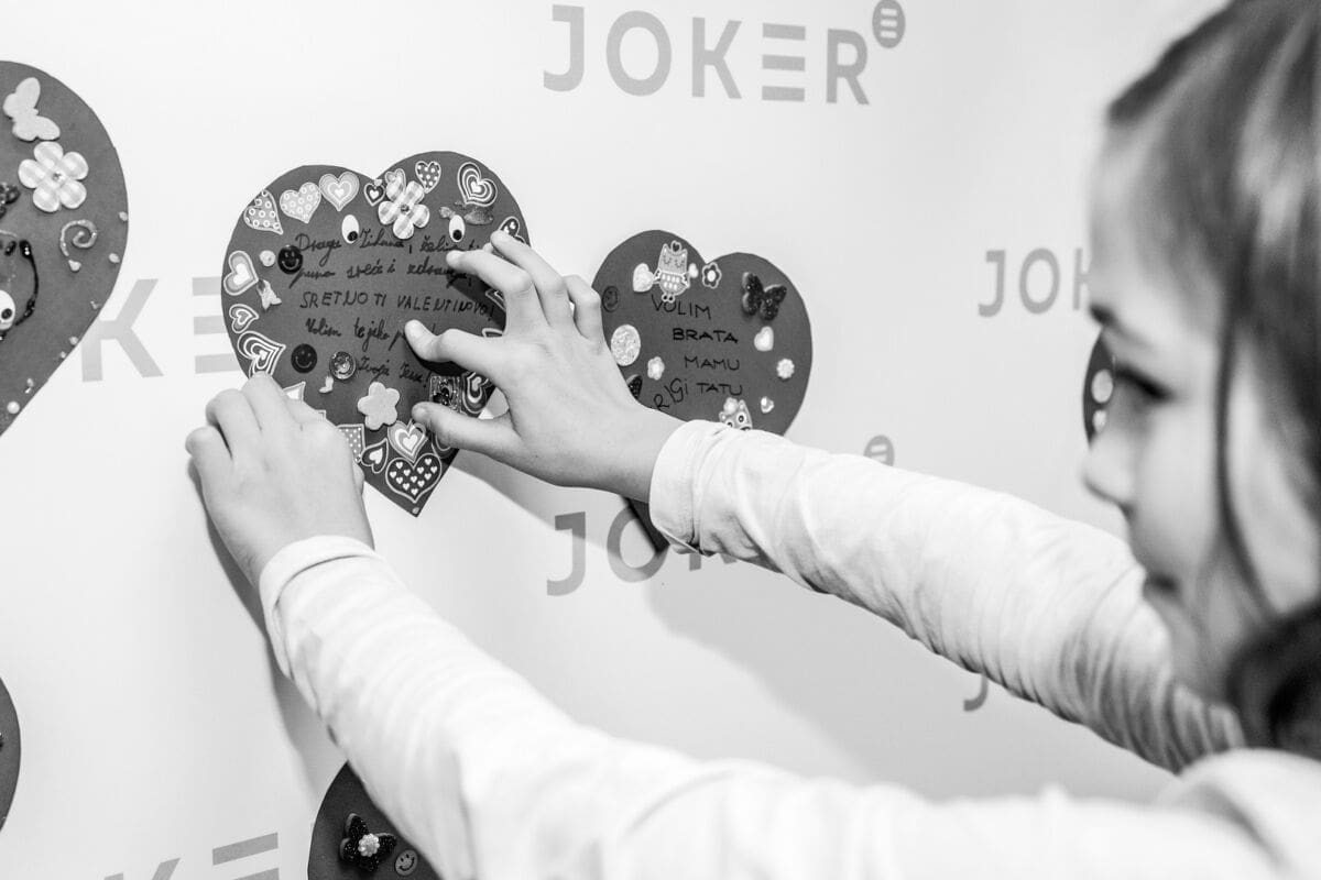 Najdomaćiji splitski shopping centar Joker predstojeći je praznik ljubavi počeo obilježavati već prošloga vikenda – vrijedne ručice na prigodnim radionicama ispisivale sui ukrašavale prekrasne poruke za svoje najmilije, a mališani su za svoj trud u izradi 'valentinovskog' panoa nagrađeni kino ulaznicama i slatkišima.