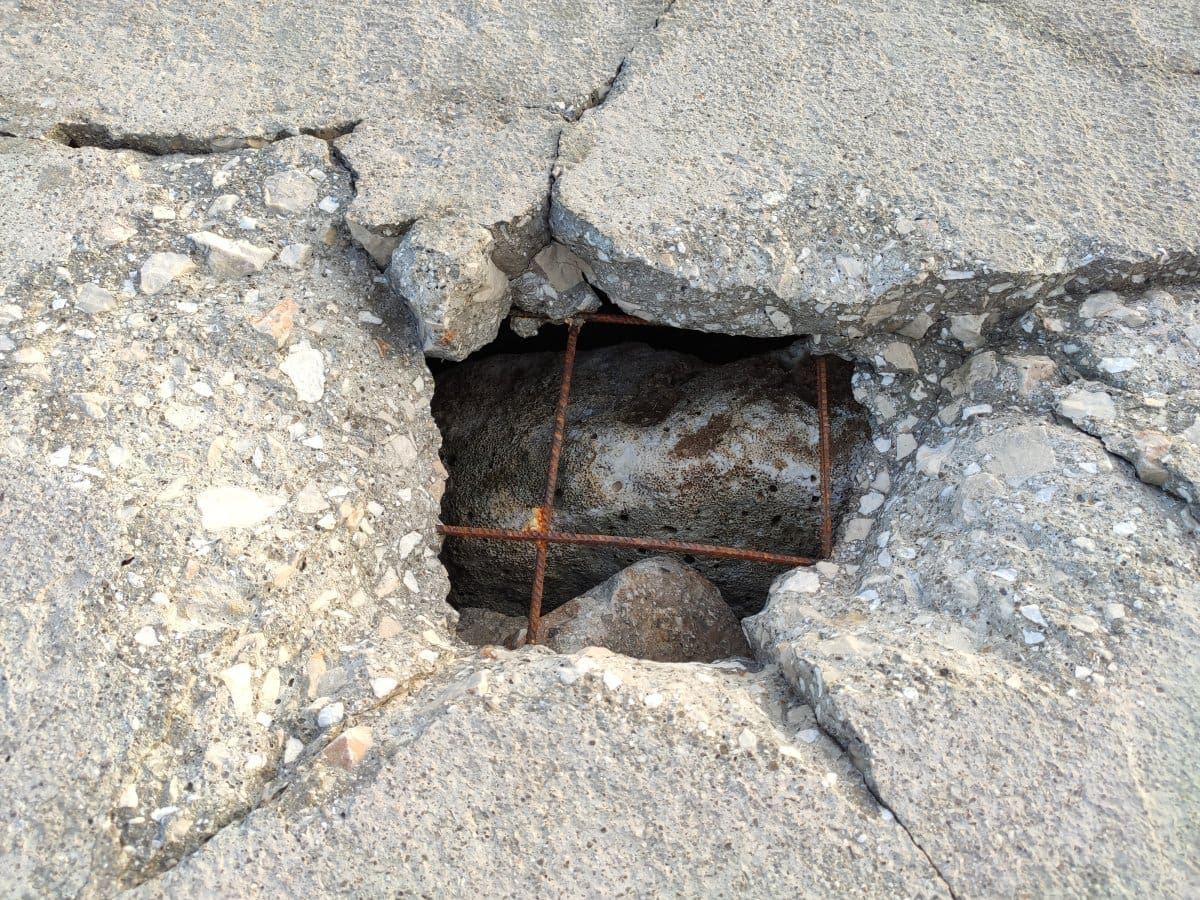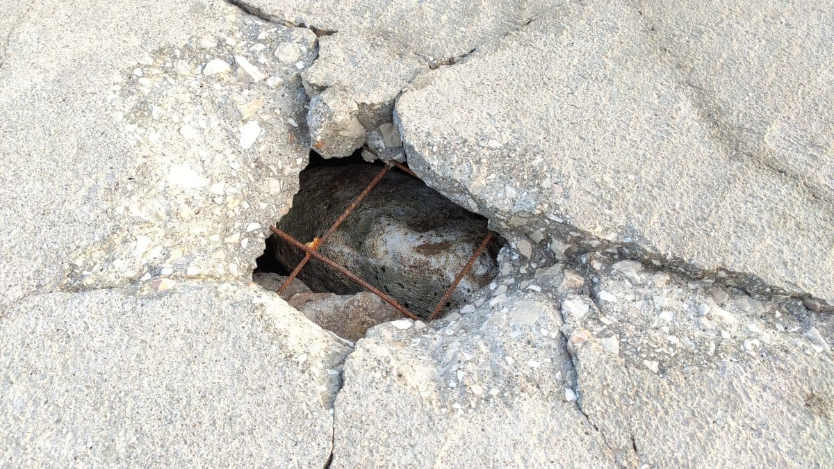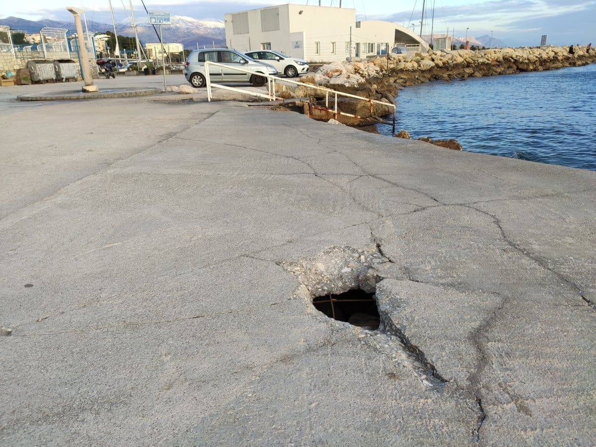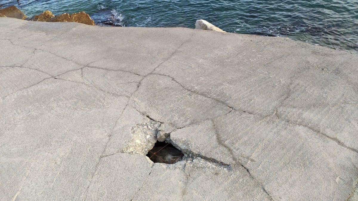 Rupa na splitskoj Zenti, točno ispred bazena POŠK-a svakodnevno prijeti šetačima. More koje udara o obalu dovelo je do toga je sve ispod betonske ploče ostalo - prazno. Stoga ne čudi što je betonska ploča napukla i nastala je rupa.