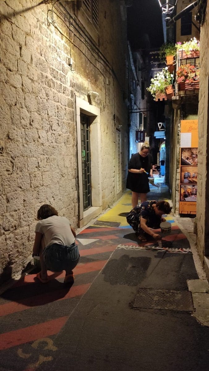Kako smo jučer izvijestili, u Budislavićevoj ulici, na mjestu gdje su članovi Likovne udruge Trogir i Udruge za razvoj civilnog društva Trogir d.i.s.t.r.i.k.t. noćima su oslikavali privremenu umjetničku instalaciju, nepoznati vandali su narančastim sprejom ispisali uvredljive grafite i crteže.