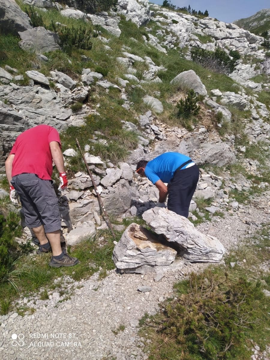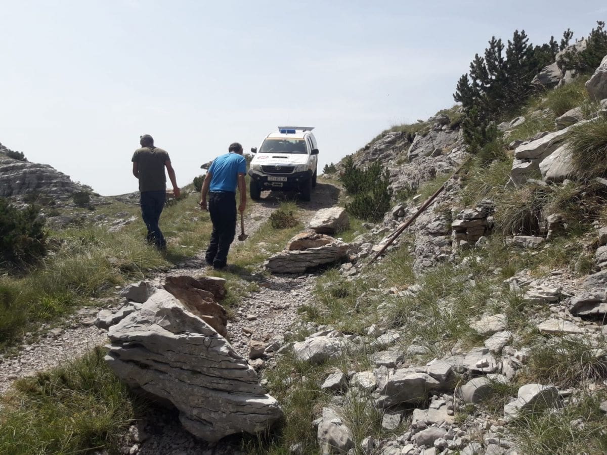 Nakon što su dobili dojavu o urušenim kamenim gromadama na putu prema planinarskom skloništu “Pume” podno Duvjakuše na Dinari, djelatnici HGSS-a Split izašli su na teren.