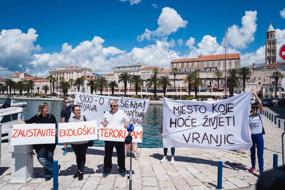 Građanska inicijativa "Mjesto koje hoće živjeti" iz Vranjica se simbolično u 12:01 okupila u znaku prosvjeda ispred Lučke kapetanije u Splitu.
