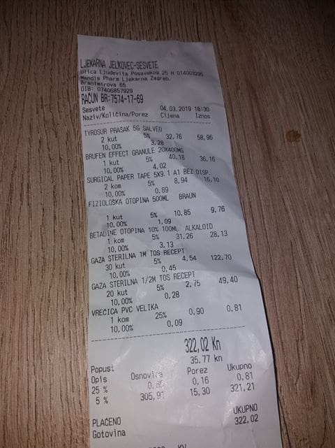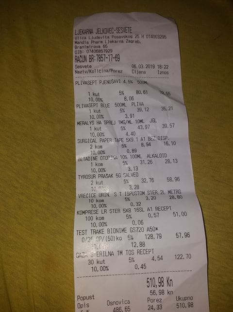 – Hvala vam na tome što spašavate život mom sinu jer da nije vas i dobri ljudi ja ne znam kako bi moj sin živio. Ja sam majka njegovateljica i dobivam 2500 kn i moj sin invalidninu, to nije dovoljno za dva tjedna za mog sina što mi treba za život. Više smo gladni nego siti. Imam još dvije kćeri, a ja sam sama sa djecom, kćeri su mi školarke, a ja tonem od muke, i problema, i stresova, rekla je očajna majka te priložila račun za Markicine medicinske potrepštine.