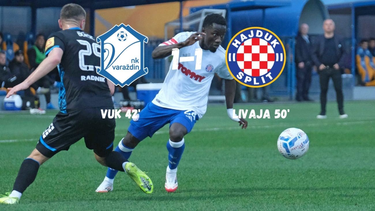 Nogometaši Hajduka danas su s početkom od 18:45 gostovali kod Varaždina u utakmici 30. kola SuperSport HNL. Utakmica nije dala pobjednika, obje su momčadi uzele po bod, a susret je završio rezultatom 1:1. Za vodstvo Varaždinaca zabio je Vuk u 42. minuti, a za poravnanje rezultata Livaja u 50. minuti. Hajduk je od 15. minute igrao s igračem manje jer je Diallo dobio izravni crveni karton. Iako su Bijeli u prvom poluvremenu izgledali blago rečeno loše, u drugom su se probudili i uspjeli doći do remija.