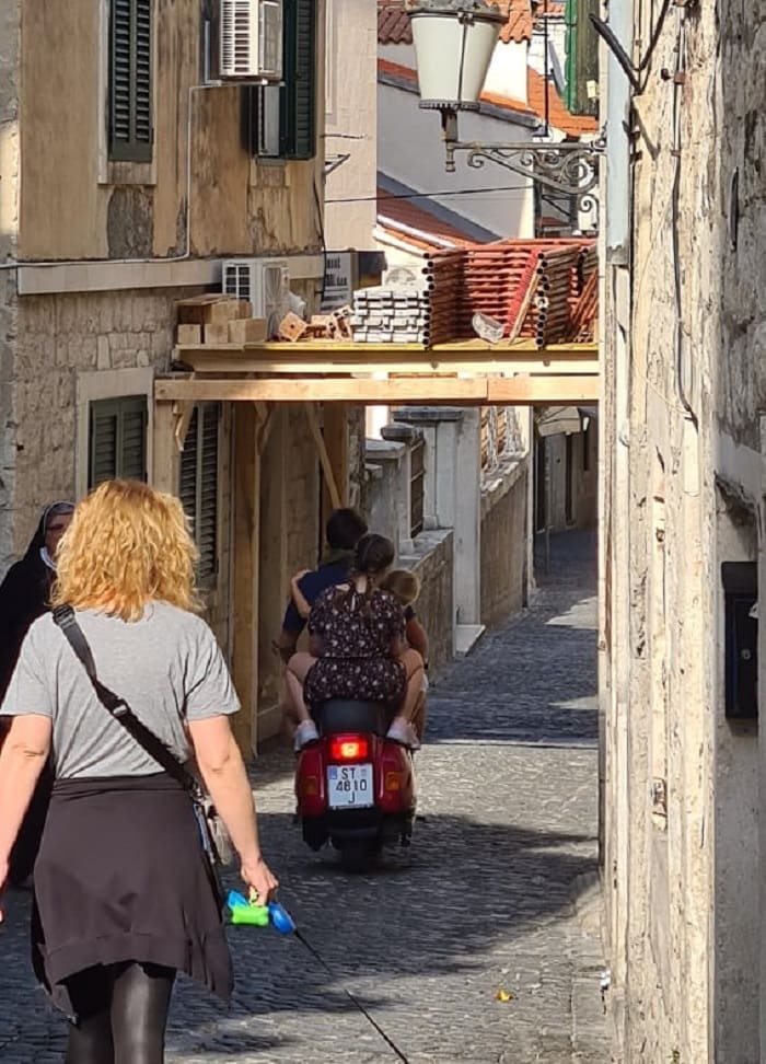 Putem nje radnici iznose ogromne vreće pune građevinskog otpada, tik iznad glava prolaznika, Varošana i ostalih Splićana, do ulice, gdje ih kupe vozila i odvoze ga, dovodeći prolaznike u opasnost. Jer što da kojem prolazniku vreća padne na glavu, da ne govorimo da tuda prolazi dosta djece…