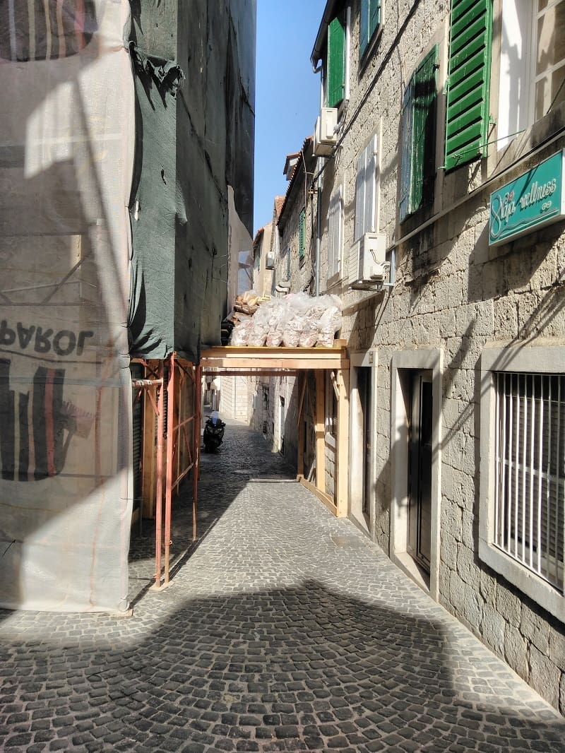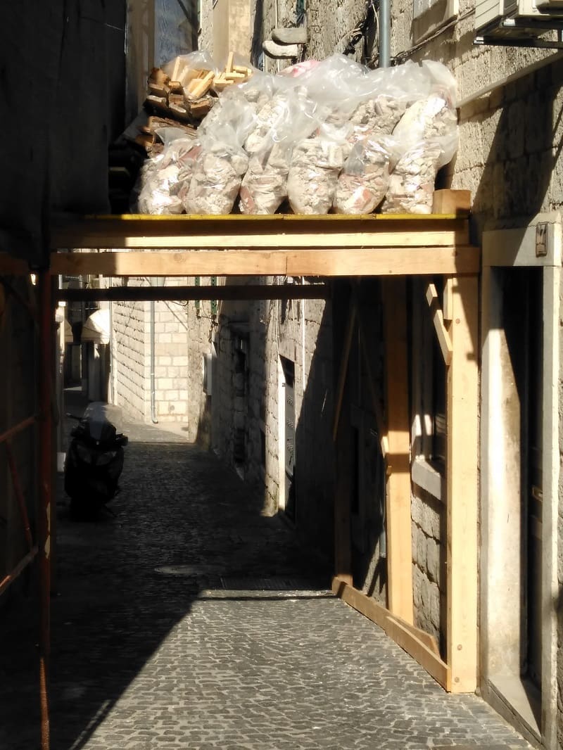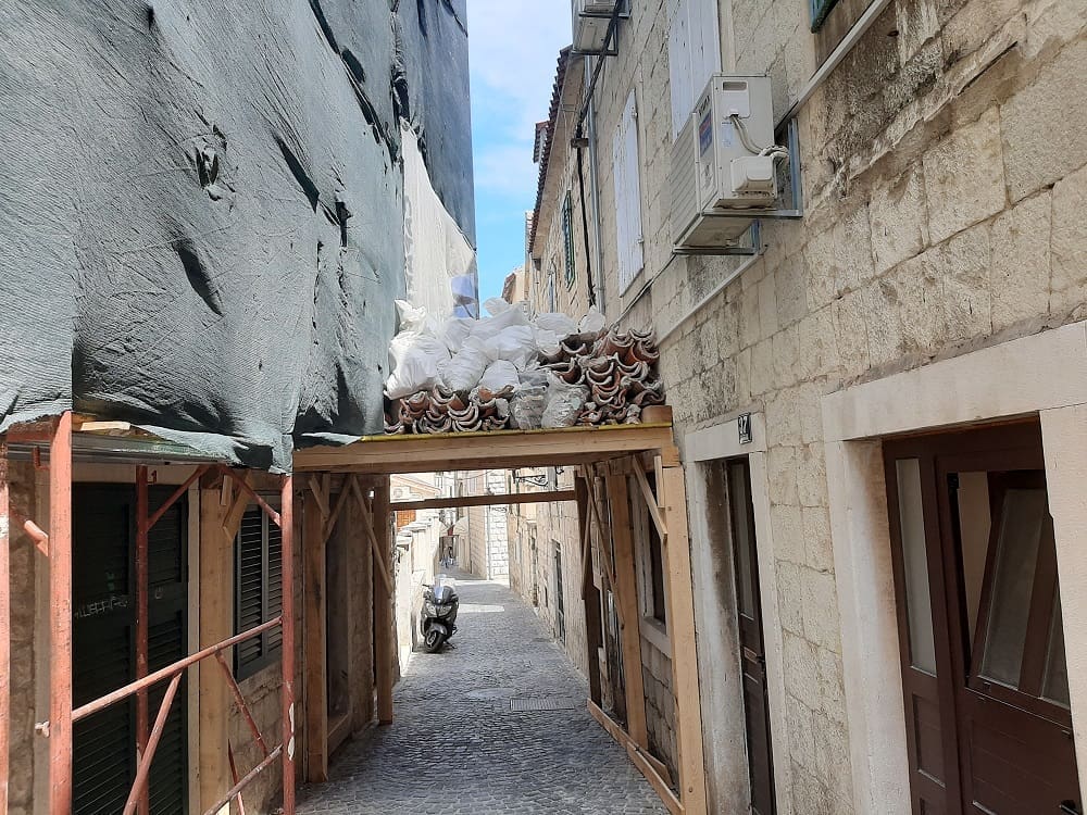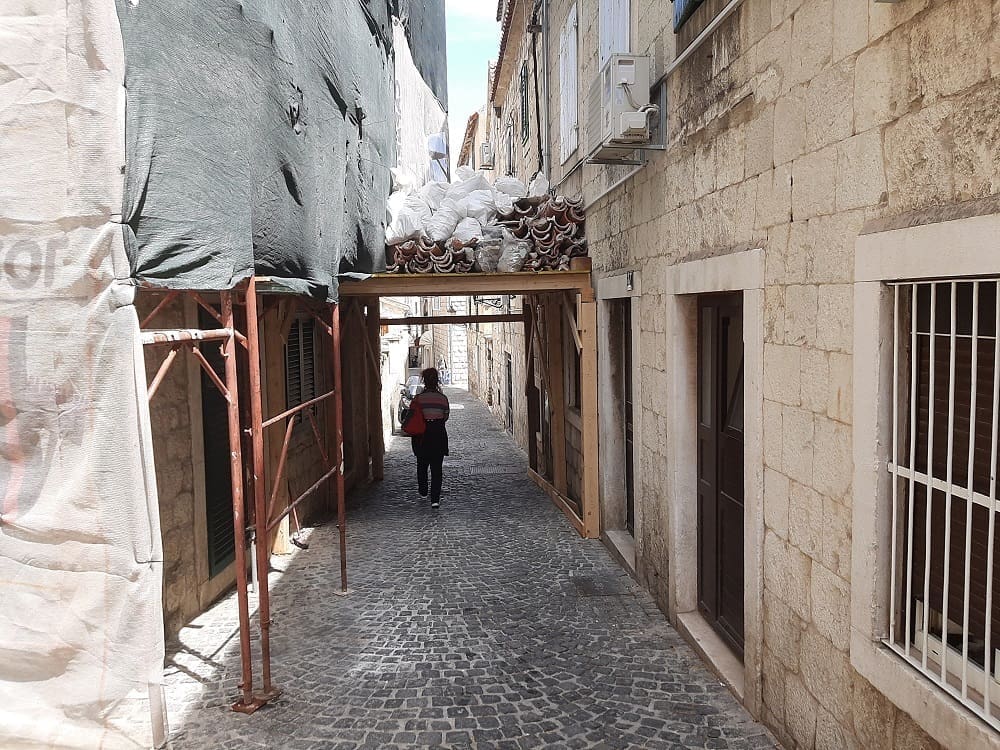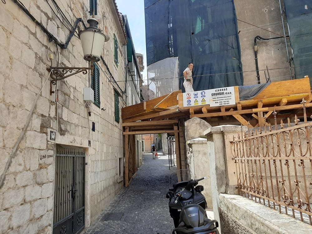 Član Građanske inicijative Varošana (GIV) Petar Despalatović objavio je u ponedjeljak, 8. lipnja, uz par fotografija, na Facebooku post "Opasno ostavljen šut iznad prolaznika. Križeva ulica, Split. A di su redari?". Odmah smo išli istražiti o čemu se radi, u komunalnom i građevinskim zahvatima pogođenom starom splitskom kvartu na samom pragu turističke sezone.