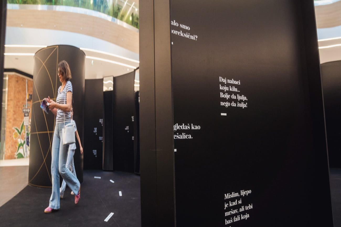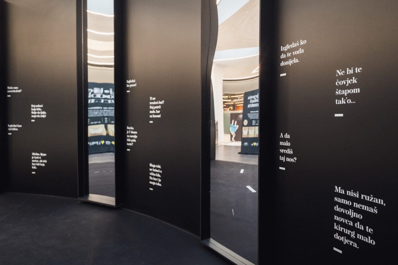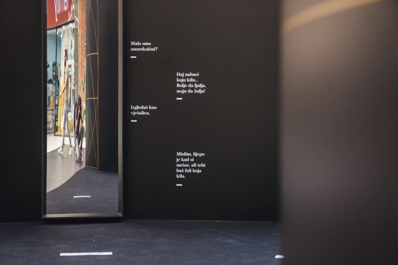 Instalacija Zlatni rez nalazi se u prizemlju City Centera one u Splitu od 26. svibnja do 7. lipnja te vas pozivamo da iskoristite priliku i posjetite ju. Ispisane poruke koje su sve već “viđene” osvijestit će snagu koju negativni komentar ima na osobu kojoj je upućen, a na ovakav slikovit način, uz ogledala koja nam mijenjaju tjelesnu reprezentaciju, uz humor se otvaraju teške teme.