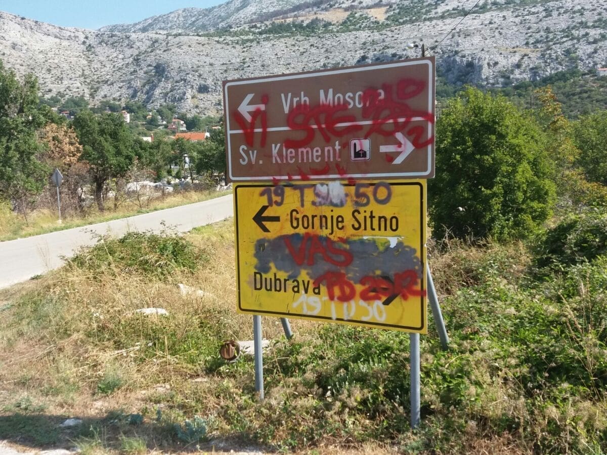 Mještani Gornjeg Sitnog mjesecima prolaze kraj išarane i uništene putokazne ploče u njihovom mjestu. Točnije, na račvanju za Gornje Sitno i Dubravu što je i jedini put za uspon na planinarski dom Umberto Girometta, ali i ostale mosorske vrhove.