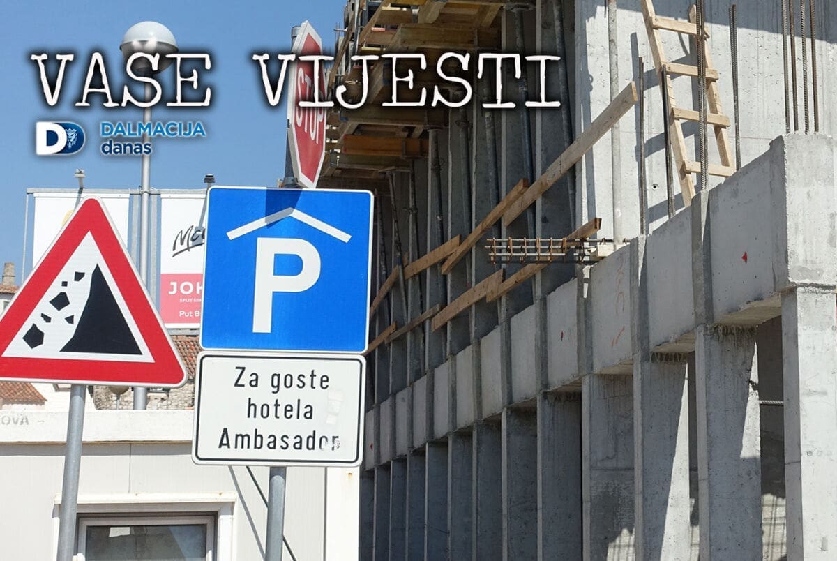 Na zanimljiv prizor naišao je naš čitatelj uz gradilište budućeg hotela Ambasador u Splitu. Među ostalim, uz cestu do hotela u izgradnji postavljen je prometni za parking namijenjen isključivo gostima hotela Ambasador. Postavlja se pitanje čemu ovaj znak točno služi i kome je namijenjen ako je više nego očito da dovršetak hotela nije nimalo blizu.