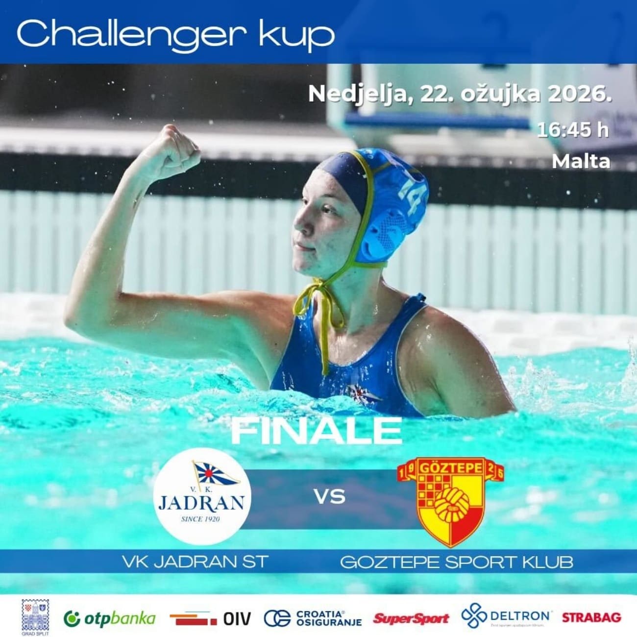 U finalu, koje je na rasporedu danas od 16.45, Jadran čeka vrlo zahtjevan suparnik: turski Göztepe. Riječ je o ekipi s kojom su Splićanke već igrale početkom mjeseca u Izmiru, kada su Turkinje slavile 16:8, pa će ovo biti prilika za uzvrat, jasno će to i kapetanica Magdalena Butić.