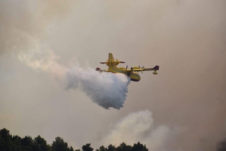 U tijeku je gašenje požara u kojem sudjeluju četiri kanadera i četiri air traktora, JVP Knin, DVD Knin, DVD Ervenik, DVD Biskupija i DVD Kistanje s 60 vatrogasaca i 21 vozilo.