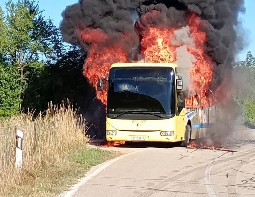 Autobus je u cijelosti izgorio, a materijalna šteta je sigurno velika.