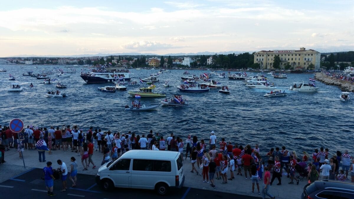 Zadarski Vatreni do Foruma su doplovili jedrenjakom "Branimir", koji se kretao uz gradski most, zatim duž Liburnske, Istarske i Obale kralja Petra Krešimira IV. Na jedrenjaku je s Vatrenima bio i Mladen Grdović koji je pjevao razne navijačke i dalmatinske pjesme. Na raglasu je, među ostalim, prije ulaska u zadarsku luku na red došla i pjesma Dina Dvornika "Malo nas je al' nas ima".