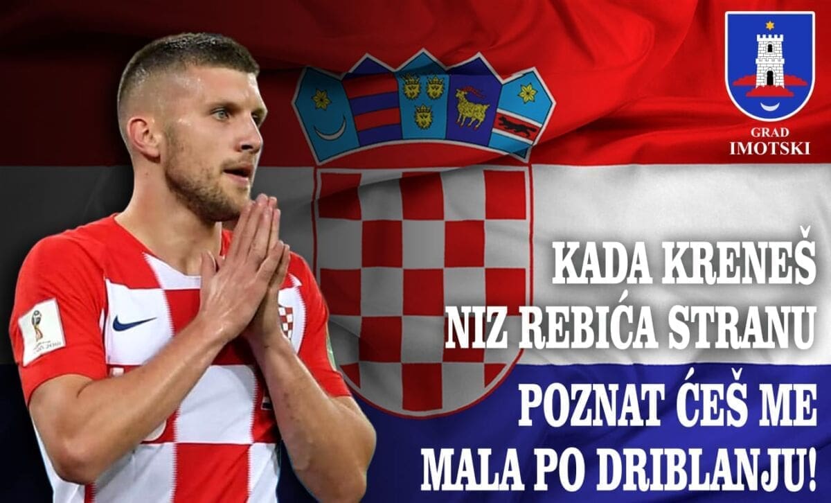 Rebić je rodom iz Vinjana Donjih u Imotskoj krajini koja ovih dana više nego ikada puca od ponosa na svoga nogometaša. Ne čudi stoga ovakva podrška nogometašu. Prvi plakat postavili su “Imotski sokolovi”, pripadnici 3. imotske bojne uz natpis “krv imotska – geni kameni – srce vatreno”.