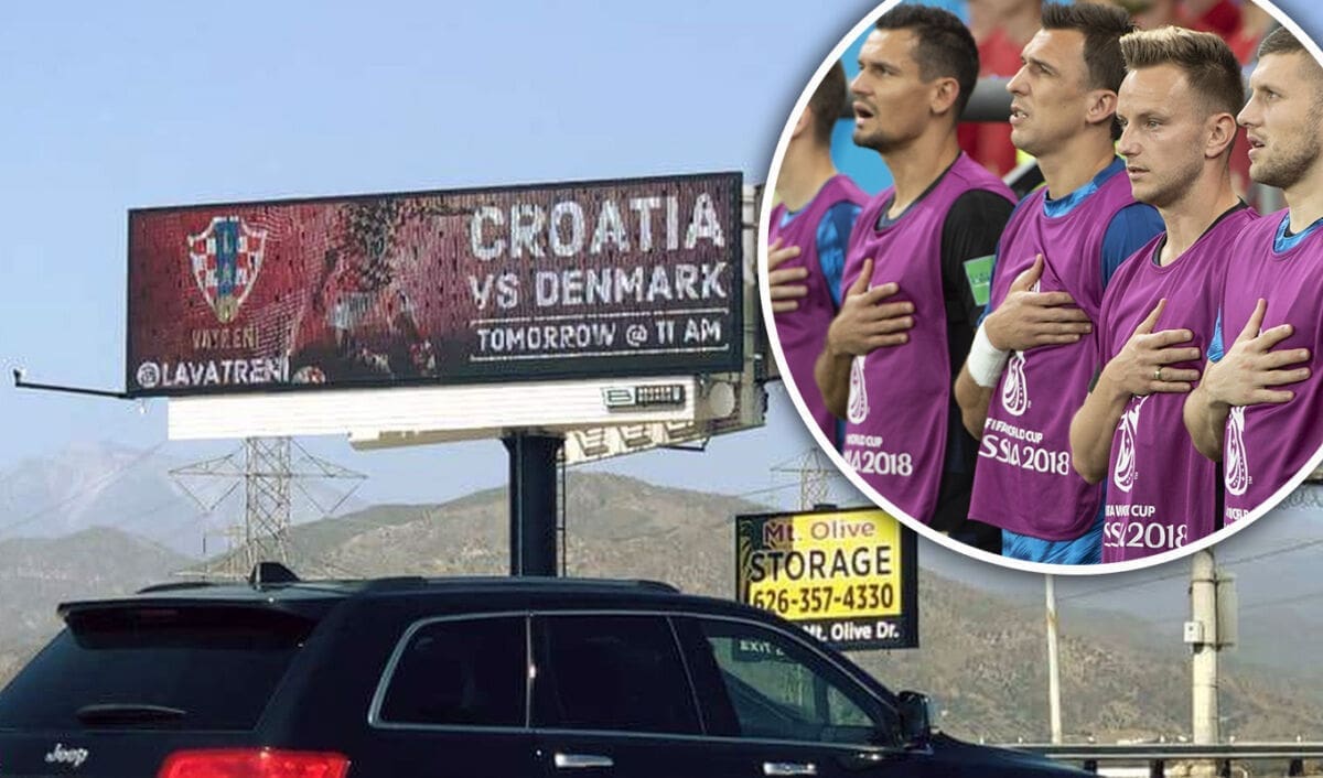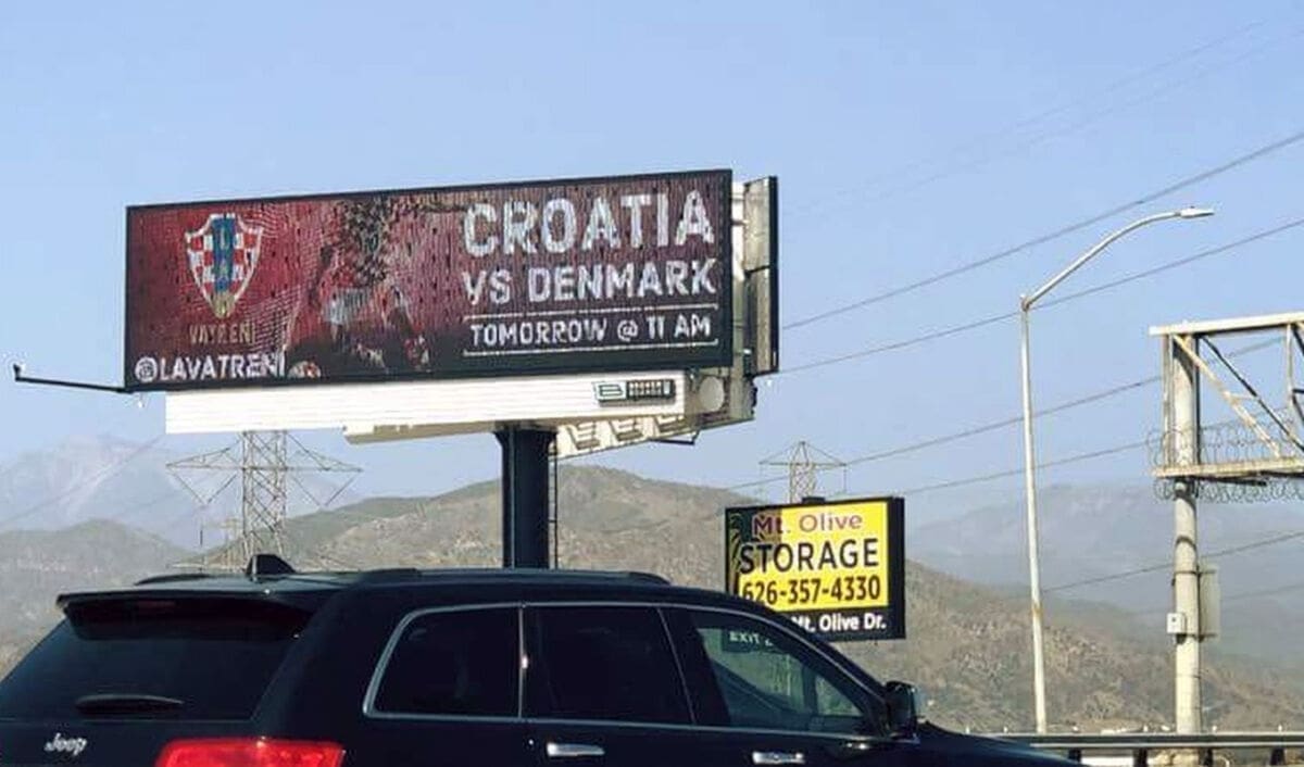 Iz SAD-a stiže vijest da su hrvatskih iseljenici iz Los Anglesa platili veliku jumbo plakat na ulazu u grad u cilju podrške Vatrenima.