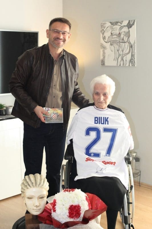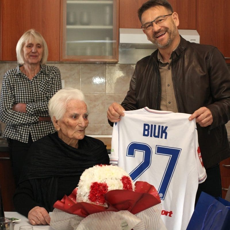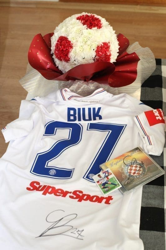 Pripremili smo našoj vatrenoj navijačici Hajdukov dres kojeg je potpisa naš Stipe Biuk, buket u obliku nogometnog baluna i CD sa hajdučkim pismama.