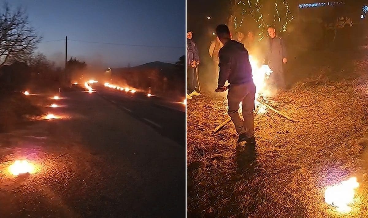 Vatrene kugle nalaze se na svakih nekoliko metara, a mještani su ih zapalili u kasno poslijepodne Badnjega dana.