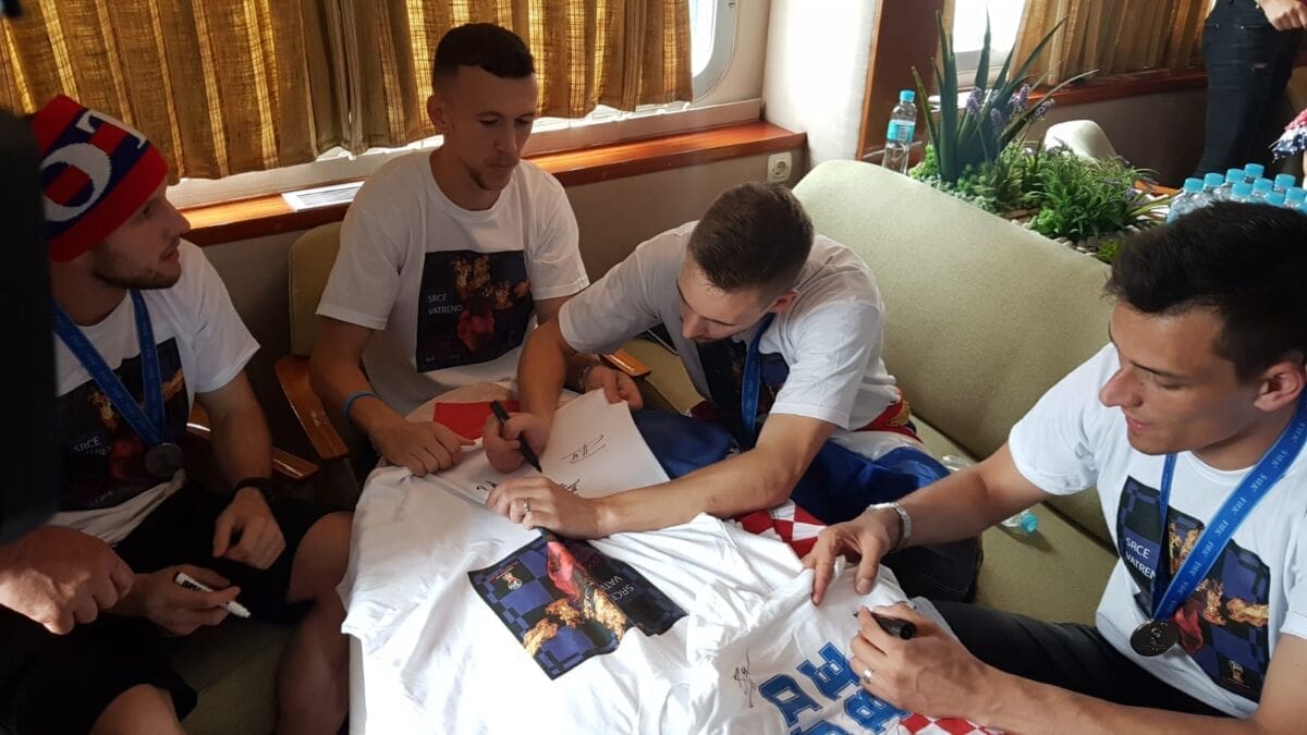 Vatreni se trenutno nalaze na jahti HRM-a Učka. Približavaju se svom krajnjem odredištu - Splitu. Dok iz na Rivi i okolici čeka na desetke tisuće obožavatelja, Vatreni uživaju na patrolnom brodu. Dijelili su autograme na majice članova posade, a Ivan Perišić pozirao je uz zastavu Hajduka.