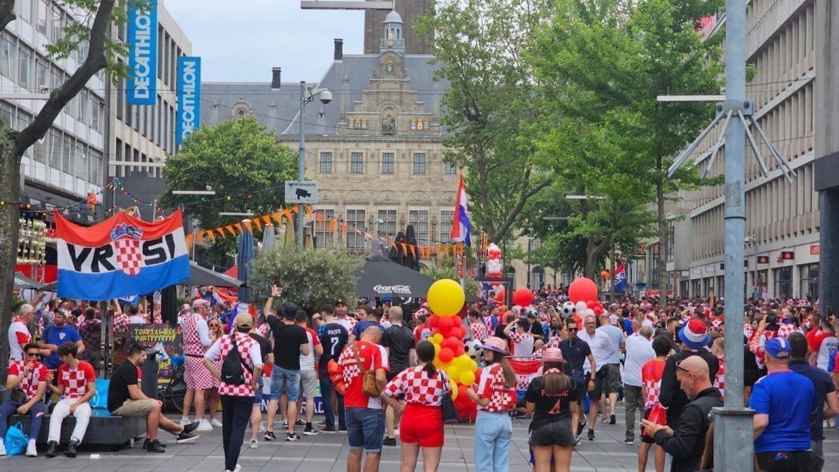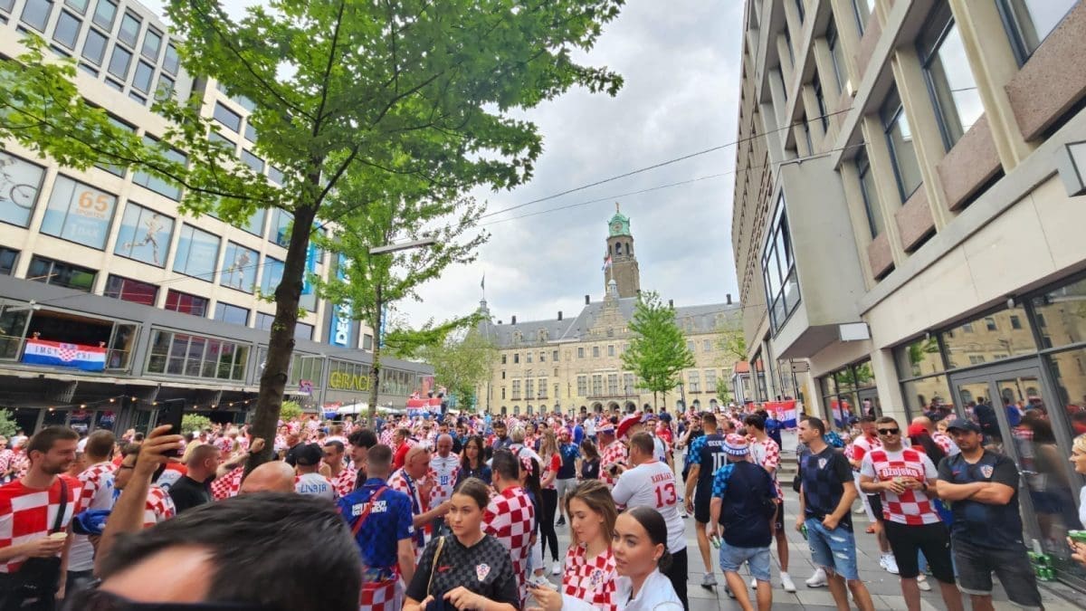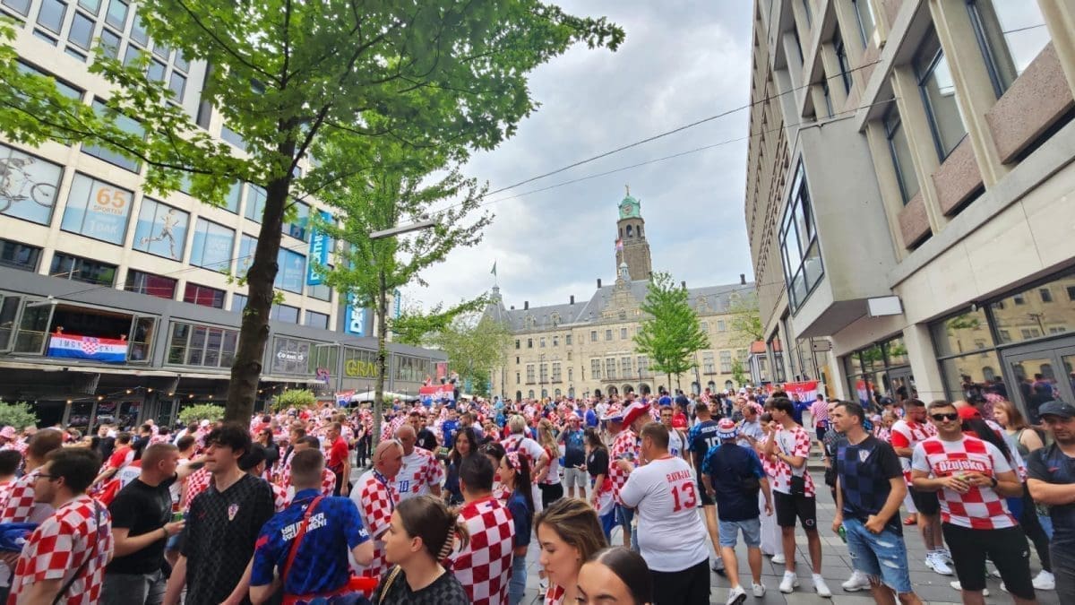 Nogometaši Hrvatske i Španjolske od 20:45 igrat će u finalu Lige nacija na legendarnom De Kuipu u Rotterdamu. Navijačka euforija vlada od jutarnjih sati, a sada stižu fotografije i videozapisi iz Rotterdama. Tamo je naš fotoreporter Roko Pavlinušić.