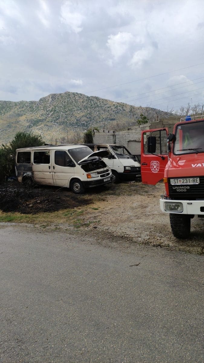 Jutros oko 9:30 u Privoru iznad Žrnovnice izbio je požar na tri parkirana automobila.
