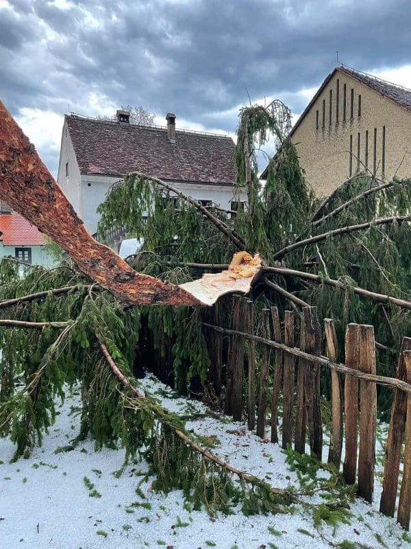 Snažno nevrijeme koje je jučer u popodnevnim i večernjim satima pogodilo kontinentalni dio Hrvatske iza sebe je ostavilo brojne posljedice. Na sanaciji je bilo angažirano gotovo 300 vatrogasaca, a najviše štete je zabilježeno u Krapinsko-zagorskoj županiji gdje je na području cijele županije, a posebno na području Oroslavja, Klanjca te općina Kumrovec i Zagorska sela, jako nevrijeme praćeno velikom količinom tuče, jakom kišom i vjetrom izazvalo prekid prometa. Stabla i granje padale su po prometnicama, a velike štete su nastale na krovištima i poljoprivrednim kulturama. Na 12 tehničkih intervencija bilo je angažirano oko 55 vatrogasaca sa 15 vatrogasnih vozila.