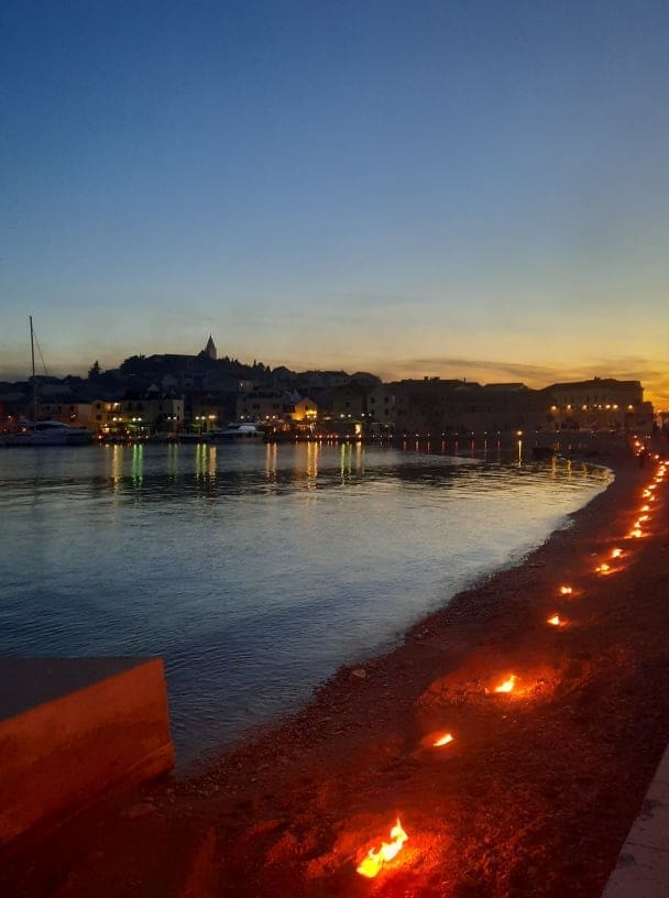 Običaj traje već preko 150 godina, od kada je 1835. Marko Prgin nakon sna pošao u Loreto u Italiji donijeti sliku prilike Gospe od Loreta. Legenda kaže da mu je u snu rečeno da se napravi procesija kroz mjesto kako bi nestala kolera. Zanimljivo, u Primoštenu postoji neobičan običaj da ovu večer i stari i mladi puše, a nekada je to bio osušeni cvijet kadulje, vjerujući da tako tjeraju zle sile.