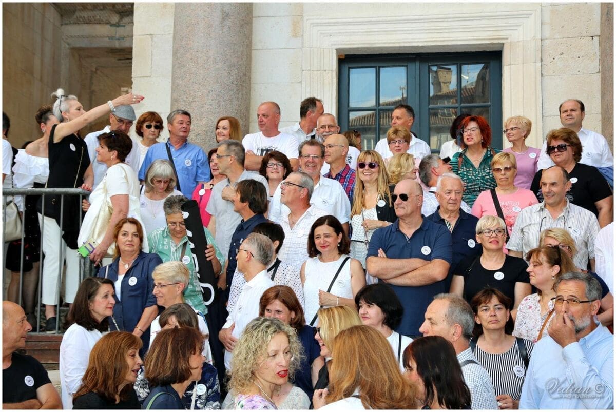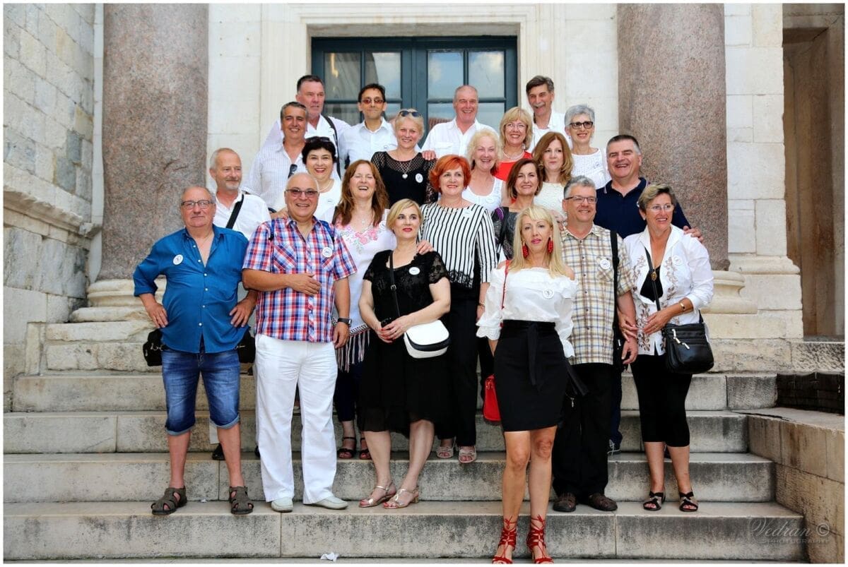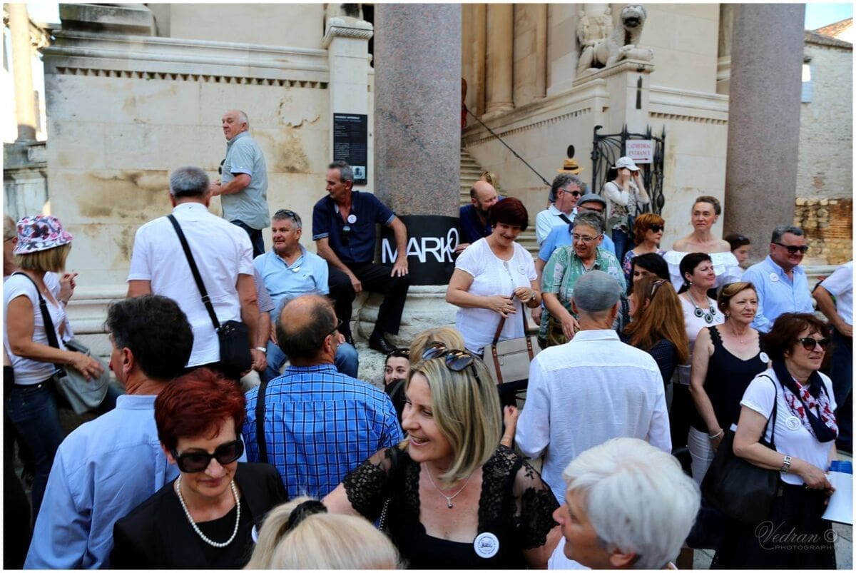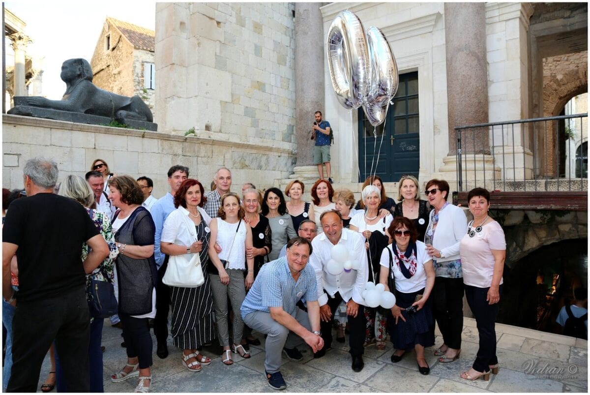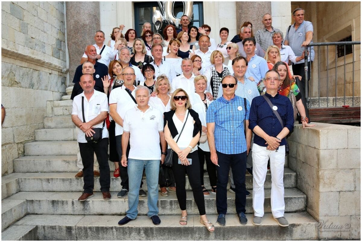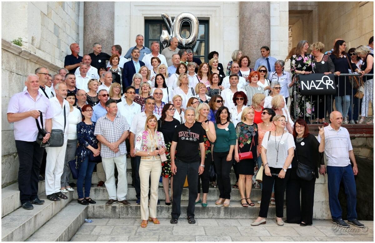 U Splitu je sinoć održano okupljanje povodom 40. obljetnice mature splitskih gimnazijalaca. Radi se o generaciji maturanata 1977./1978. Okupljanje je počelo u 18 sati na splitskom Peristilu gdje su svi sudionici dobili prigodne bedževe, a potom je uslijedilo i zajedničko fotografiranje. Svi su se potom preselili na Ovčice gdje se DH pobrinuo za puštanje glazbe ’70-ih godina, a sve uz zabavu i dobru spizu. Svaka četiri gimnazije imale su svoju slavljeničku tortu.