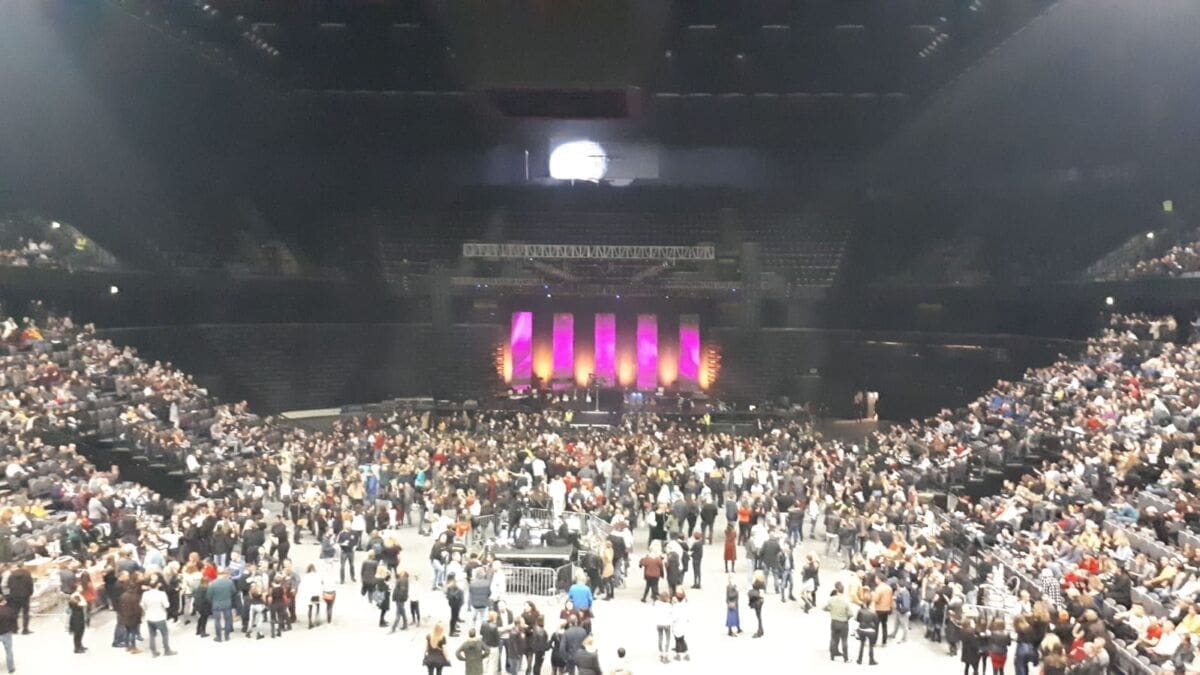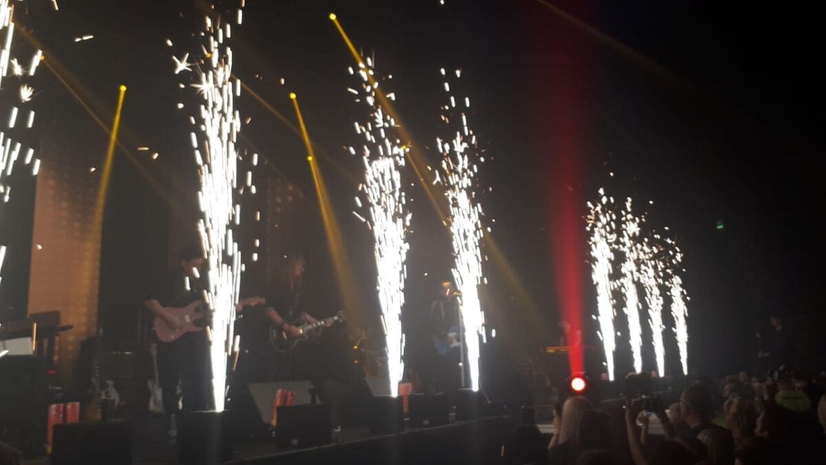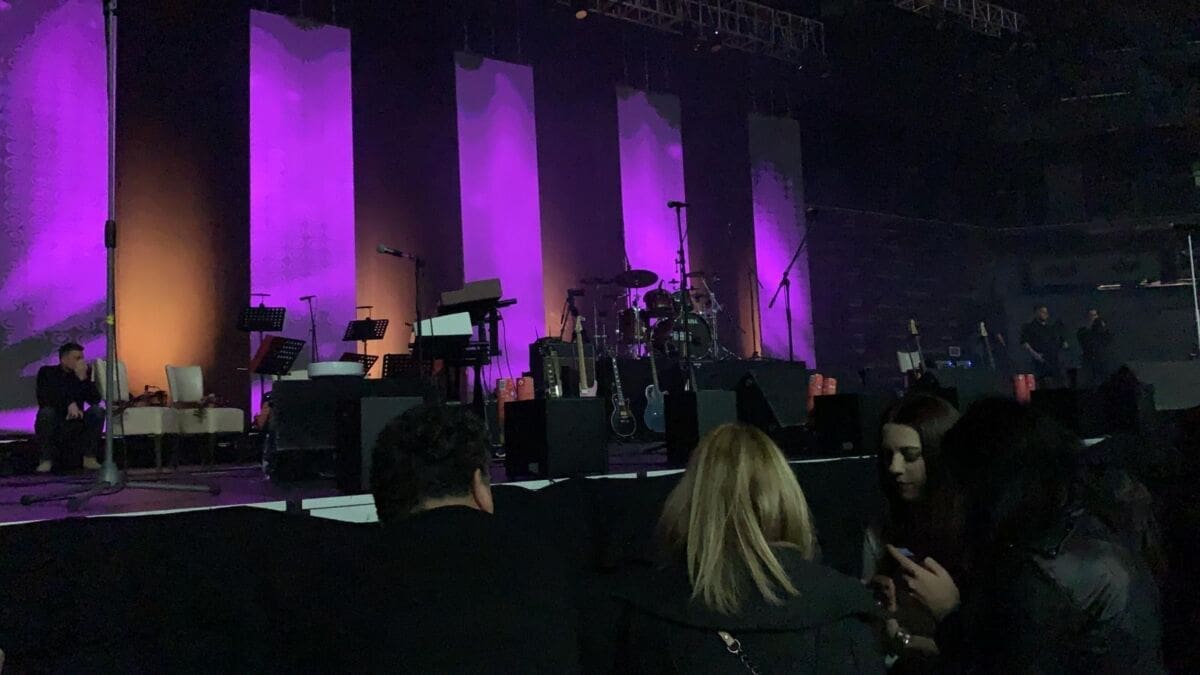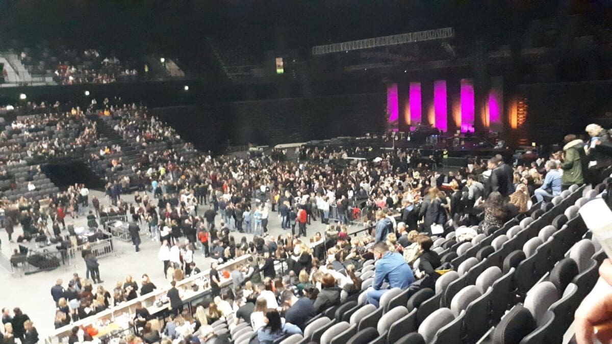 20:35 - Iako je još uvijek arena nepopunjena arena, svijetla se gase dok publika nestrpljivo očekuje početak koncerta.