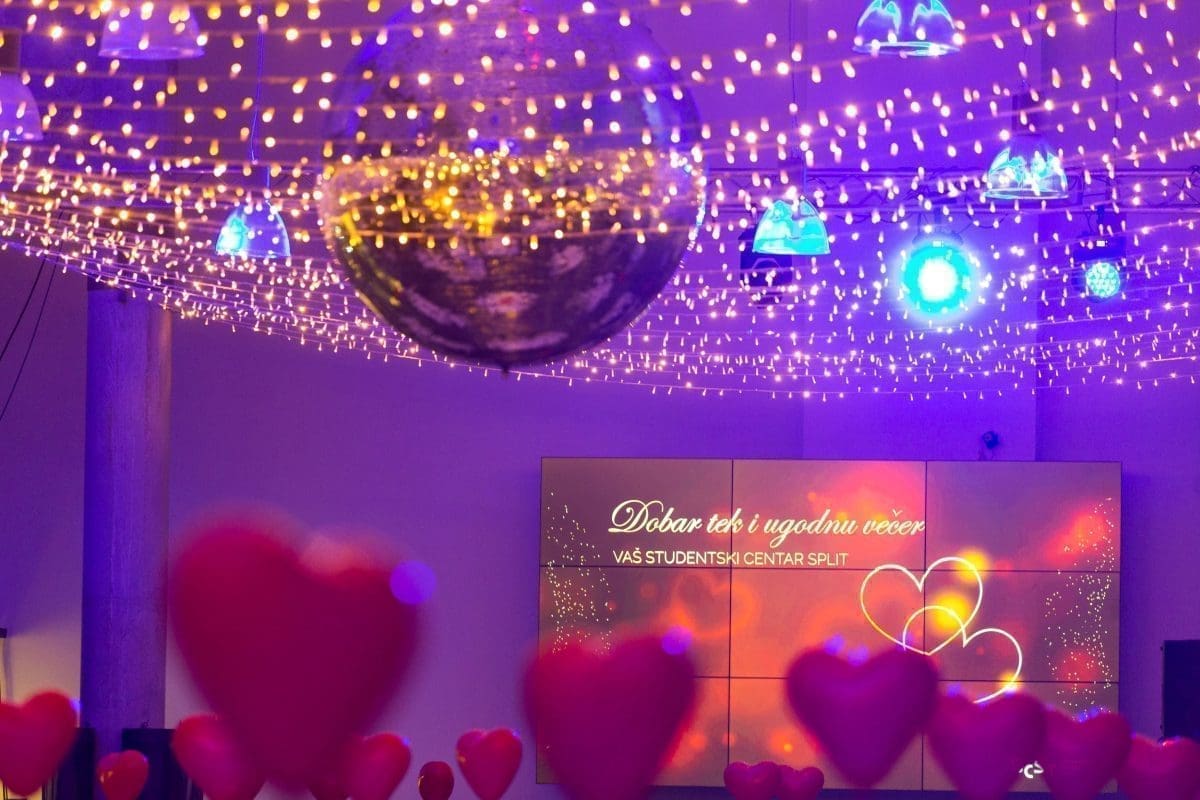 A atmosfera je uistinu bila posebna. Prigodno dekorirani stolovi za dvoje, baloni u obliku srca, prigušena rasvjeta s mnoštvo malih lampica i romantična glazba u pozadini. Posebno zaljubljeni su bili Karla i Ivan koji su brzo približili stolice jedno drugomu da ne sjede na velikoj udaljenosti. - Ove lampice kao zvjezdano nebo mi se najviše sviđaju – veselo govori Karla Bogoje, studentica Filozofskog fakulteta u Splitu.