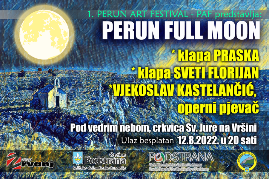 Udruga Žrvanj i Općina Podstrana organiziraju prvi Full Moon Perun u sklopu 1. PAF-a, Perun art festivala.