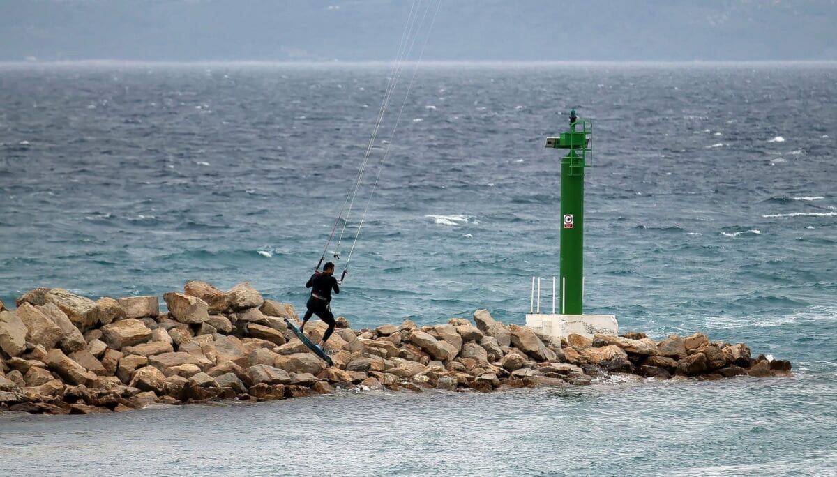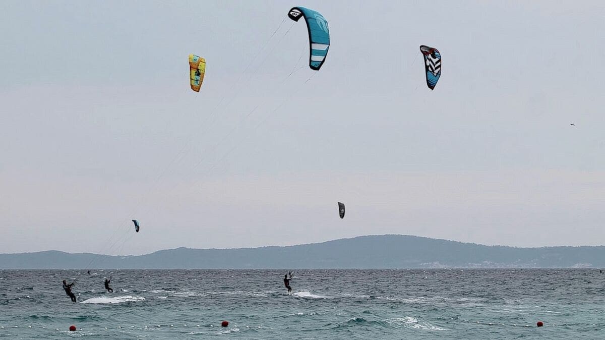 Iako se vrhunac juga u Dalmaciji očekuje tijekom petka, već je jučer u drugom dijelu dana imalo olujne udare. Bila je to idealna prilika splitskim kitesurferima pokazati svoja umijeća.