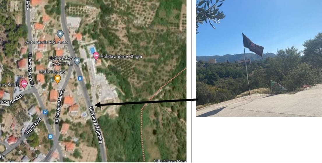 Nakon informacije s terena obratili smo pažnju na staru Klišku cestu i vidjeli kako se vijori zastava HOS-a s natpisom „ZA DOM SPREMI“ (na lokaciji na donjoj slici).